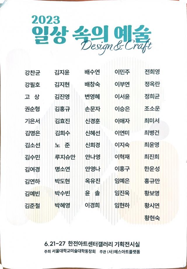 <전시 안내> 신희경 교수님 참여 전시 - 일상속의 예술, 서울대 미대 동문전