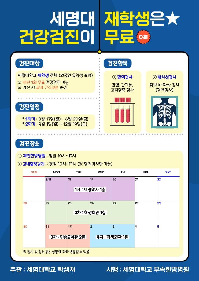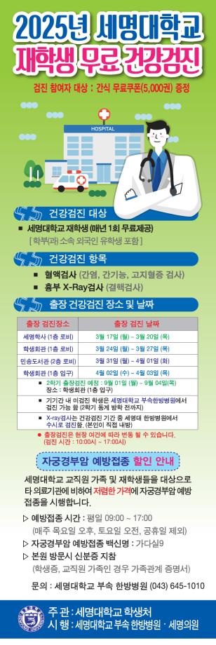 [학생처] 2025년 세명대 재학생 무료 건강검진 실시