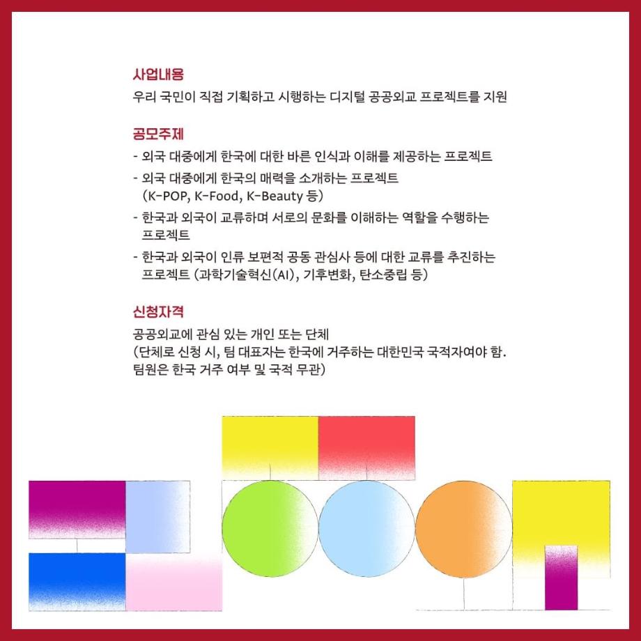 본문 시작 홈으로 학과생활 학과소개 교수소개 교과과정 학과생활 홈페이지가이드 사진게시판 공지사항 사진게시판 전공자료실 동아리 학과행사 사진게시판 페이스북 트위터 프린트 2022KF 국민공공외교 프로젝트 공모 산업디자인학과 2588 2022-03-15 목록 이전2022년 세명대학교가 세상에 보내는 9가지 기호 다음 재미있는 경험을 위한 학생위원회 모집 안내 포스터 담당부서 : 산업디자인학과 담당자 : - 연락처 : 043-649-1436 최종수정일 : 2024-10-26 만족도조사 만족도 조사 이 페이지에서 제공하는 정보에 대하여 만족하시나요? 매우만족 만족 보통 불만족 매우불만족