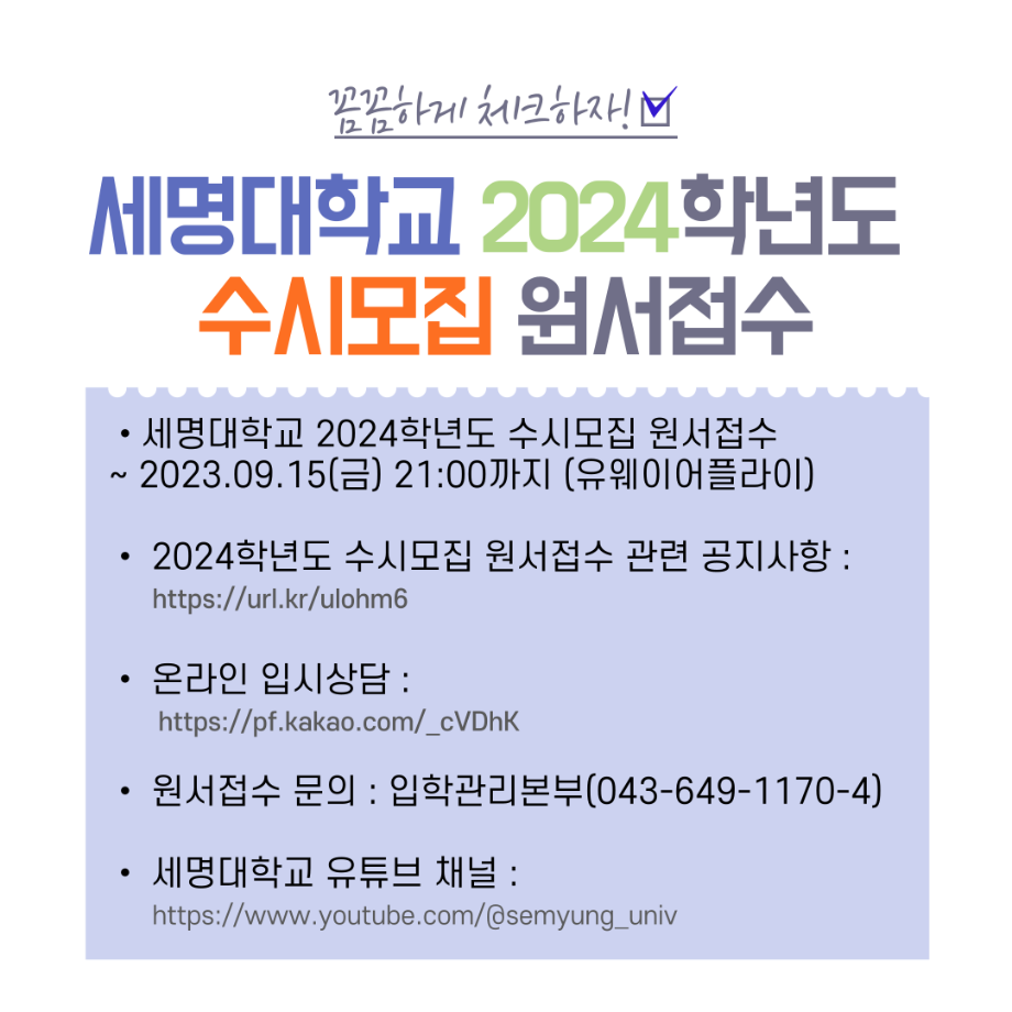 본문 시작 홈으로 학과생활 학과소개 교수소개 교과과정 학과생활 홈페이지가이드 사진게시판 공지사항 사진게시판 전공자료실 동아리 학과행사 사진게시판 페이스북 트위터 프린트 [수시모집] 2024학년도 세명대학교 수시모집 원서접수 안내 산업디자인학과 3406 2023-09-13 목록 이전[건강검진] 2023학년도 재학생 무료 건강검진 안내 다음 [메가캡스톤] 2023학년도 산업디자인학과 메가캡스톤 디자인 활동사진 담당부서 : 산업디자인학과 담당자 : - 연락처 : 043-649-1436 최종수정일 : 2024-10-26 만족도조사 만족도 조사 이 페이지에서 제공하는 정보에 대하여 만족하시나요? 매우만족 만족 보통 불만족 매우불만족