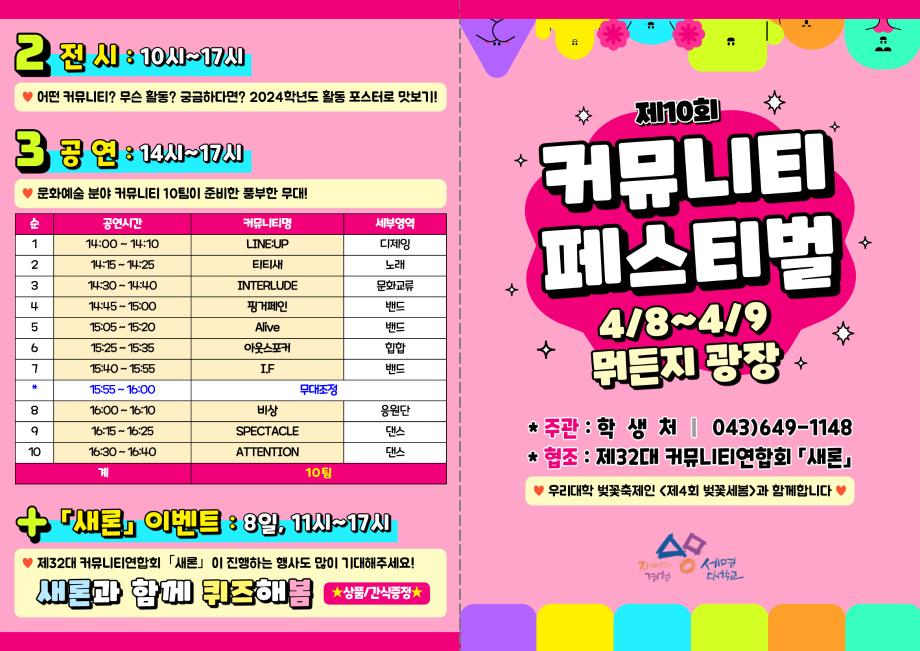 본문 시작 홈으로 학과생활 학과소개 교수소개 교과과정 학과생활 홈페이지가이드 사진게시판 공지사항 사진게시판 전공자료실 동아리 학과행사 사진게시판 페이스북 트위터 프린트 [학생처] 제10회 커뮤니티 페스티벌 산업디자인학과 1288 2025-04-02 목록 이전[인권센터] 2025학년도 학생대상(대학원생 포함) 폭력예방교육 다음 [CHARM케어상담센터] 2025학년도 1학기 자살예방교육 실시 담당부서 : 산업디자인학과 담당자 : - 연락처 : 043-649-1436 최종수정일 : 2024-10-26 만족도조사 만족도 조사 이 페이지에서 제공하는 정보에 대하여 만족하시나요? 매우만족 만족 보통 불만족 매우불만족