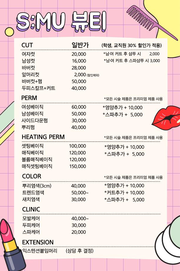 본문 시작 홈으로 커뮤니티 학과소개 교수소개 학과과정 커뮤니티 대학원 홈페이지가이드 포토갤러리 공지사항 채용정보 포토갤러리 Youtube 바로가기 Instargram 바로가기 Blog 바로가기 Facebook 바로가기 포토갤러리 페이스북 트위터 프린트 세명대학교 S:MU 뷰티 살롱 OPEN 뷰티케어학 2981 2023-09-01 1. 오픈일 : 2023년 9월 1일 2. 이용안내 : 전화 or 네이버 예약 3. 할인 : 세명대학교 교직원 인증 시 할인 된 가격으로 이용하실 수 있습니다 4. 위치 : 뷰티케어센터 2층 5. 관련문의 : 043-649-7368 목록 이전재학생 모교방문단: 정신여자고등학교 다음 2023년도 2학기 개강총회