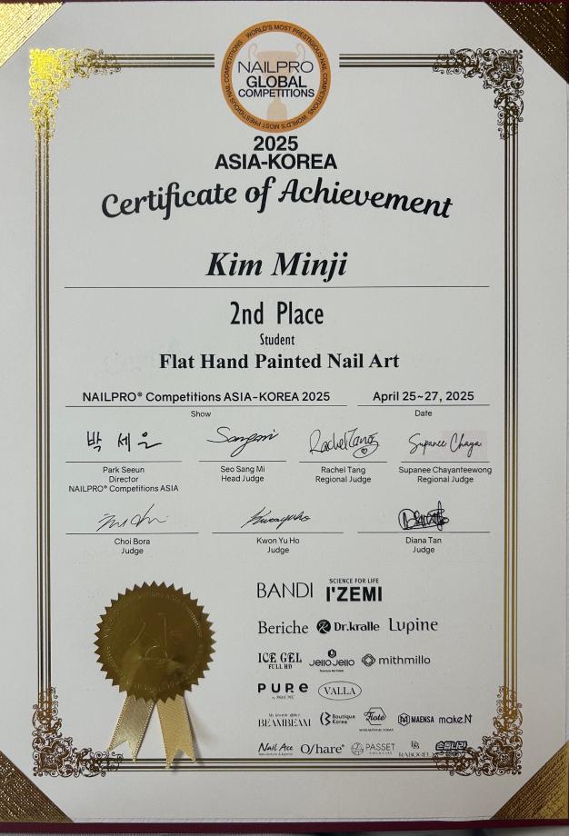본문 시작 홈으로 커뮤니티 학과소개 교수소개 학과과정 커뮤니티 대학원 홈페이지가이드 포토갤러리 공지사항 채용정보 포토갤러리 Youtube 바로가기 Instargram 바로가기 Blog 바로가기 Facebook 바로가기 포토갤러리 페이스북 트위터 프린트 2025 아시아 네일프로글로벌컴피티션, 수상! 뷰티케어학과 648 2025-08-14 2025 아시아 네일프로글로발컴피티션 핸드페인팅 2등 뷰티케어학과 2학년 김민지 축하합니다~🎉👍😊 목록 다음 뷰티케어학과, 첫 졸업생 등장! 축하합니다! 다음 뷰티케어학과, NEW 네일실습실 공개!