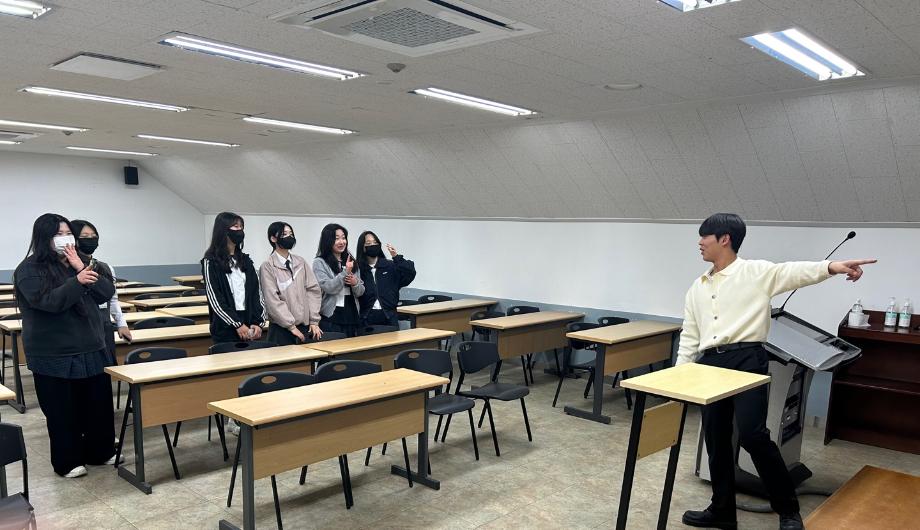 본문 시작 홈으로 커뮤니티 학과소개 입학정보 교수소개 학과과정 커뮤니티 공연예매 안내 홈페이지가이드 포토갤러리 공지사항 포토갤러리 작품DB 동아리 학사일정 학생회 포토갤러리 페이스북 트위터 프린트 2023 제천여고 전공탐색 연기예술학과 2930 2023-05-08 제천여고 학생들이 세명대학교 공학관에서 진행하는 전공 탐색 프로젝트에 참여했습니다. 학생들은 블랙박스와 태양아트홀, 연습실, 소품실 등 다양한 장소를 탐방했고, 진행되는 수업의 모습도 볼 수 있었습니다. 제천여고 학생들에게 학관을 안내하며 전공 탐색을 도와준 학생들과 수업시간에도 참관을 허락해주신 교수님, 학생분들께 감사의 인사를 전합니다. 목록 이전2023년 하계 표준/자율현장실습 신청 안내 다음 2023 스승의 날 & 성년의 날 행사 담당부서 : 연기예술학과 담당자 : - 연락처 : 043-649-1733 최종수정일 : 2024-10-26 만족도조사 만족도 조사 이 페이지에서 제공하는 정보에 대하여 만족하시나요? 매우만족 만족 보통 불만족 매우불만족
