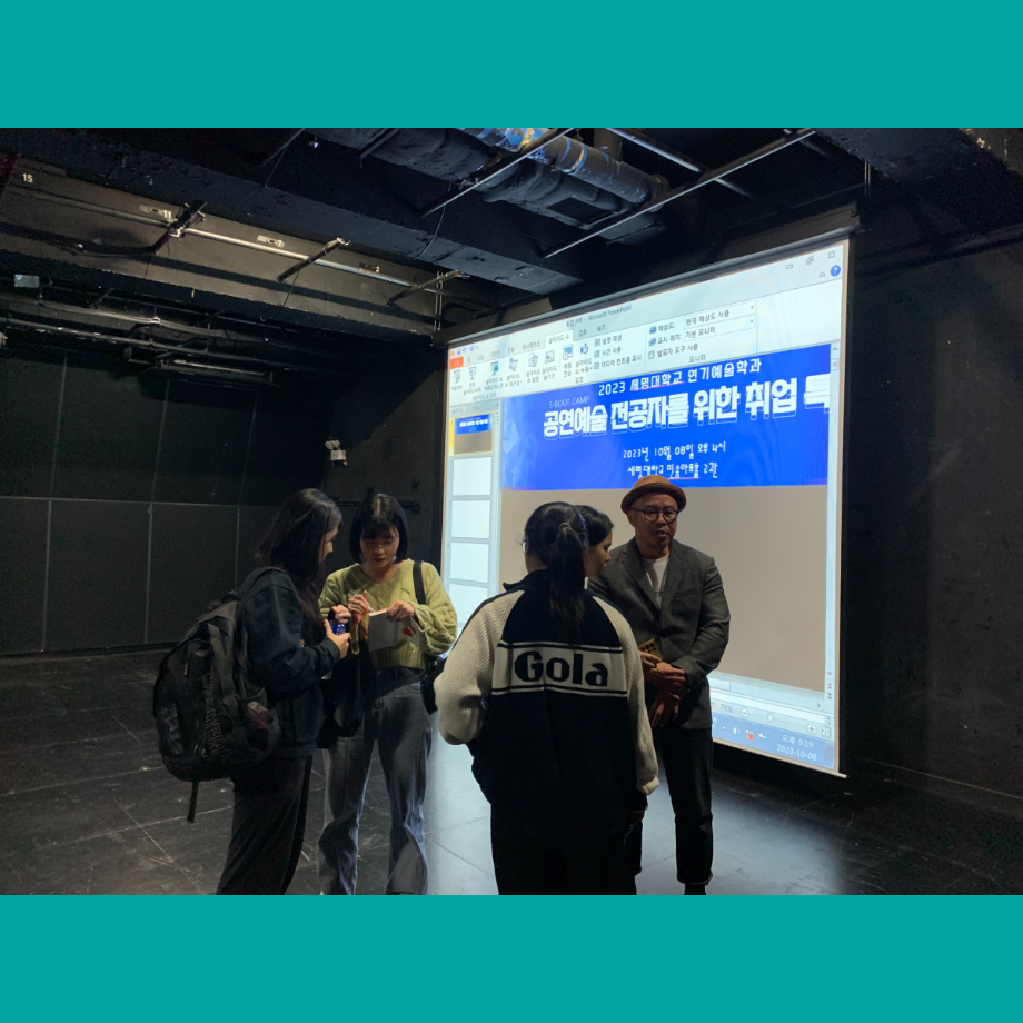 본문 시작 홈으로 커뮤니티 학과소개 입학정보 교수소개 학과과정 커뮤니티 공연예매 안내 홈페이지가이드 포토갤러리 공지사항 포토갤러리 작품DB 동아리 학사일정 학생회 포토갤러리 페이스북 트위터 프린트 2023 공연예술 전공자를 위한 취업 특강 연기예술학과 3392 2023-10-30 지난 10월 8일 세명대학교 연기예술학과 4학년 취업 특강이 진행되었습니다. <시동라사>, <연변엄마>, <목란언니>, <썬샤인의 전사들>, <빵야> 등 을 쓰신 김은성 작가님을 만나뵐 수 있는 기회였습니다. 사전에 학생들이 궁금했던 Q&A를 바탕으로 졸업작품을 준비하면서 풀리지 않았던 것들, 작가의 삶 등 다양한 궁금증을 풀 수 있었습니다. 목록 이전★2023학년도 인권세미나 신청 안내★ 다음 제 16회 세명대학교 연기예술학과 졸업작품 <썬샤인의 전사들> 포스터 & 캐스트 담당부서 : 연기예술학과 담당자 : - 연락처 : 043-649-1733 최종수정일 : 2024-10-26 만족도조사 만족도 조사 이 페이지에서 제공하는 정보에 대하여 만족하시나요? 매우만족 만족 보통 불만족 매우불만족