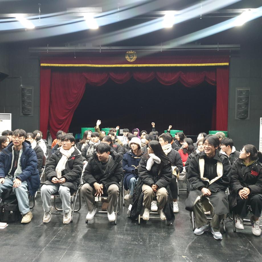본문 시작 홈으로 커뮤니티 학과소개 입학정보 교수소개 학과과정 커뮤니티 공연예매 안내 홈페이지가이드 포토갤러리 공지사항 포토갤러리 작품DB 동아리 학사일정 학생회 포토갤러리 페이스북 트위터 프린트 세명대학교 연기예술학과 특강 [박건형 배우님] 연기예술학과 3596 2024-01-29 지난 11월 29일 박건형 배우님(뮤지컬, 영화배우)과 함께 하는 특강이 열렸습니다. 이번 특강에서는 배우들이 가지고 있어야 하는 자질과 훈련하는 방법, 배우님의 현장에서의 경험, 오디션을 볼 때 중요한 팁 등을 배울 수 있었습니다. 세명대학교 연기예술학과 학생들의 발전을 위해 열심히 특강해 주신 박건형 배우님 감사합니다. 목록 이전사이와의 인터뷰 - 23년도 극장동아리 영상 파트 부원 ‘김준희‘ 다음 더 가까워진 세명대학교 담당부서 : 연기예술학과 담당자 : - 연락처 : 043-649-1733 최종수정일 : 2024-10-26 만족도조사 만족도 조사 이 페이지에서 제공하는 정보에 대하여 만족하시나요? 매우만족 만족 보통 불만족 매우불만족