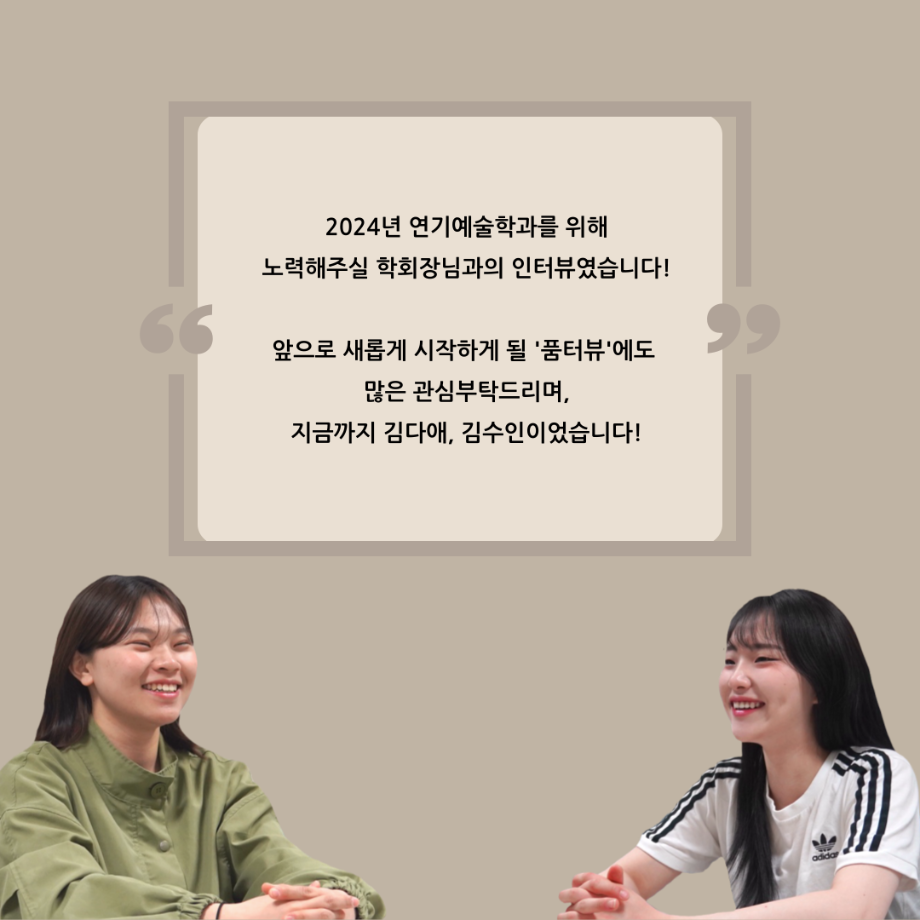 본문 시작 홈으로 커뮤니티 학과소개 입학정보 교수소개 학과과정 커뮤니티 공연예매 안내 홈페이지가이드 포토갤러리 공지사항 포토갤러리 작품DB 동아리 학사일정 학생회 포토갤러리 페이스북 트위터 프린트 '품'위있는 인'터뷰' - 24년도 학회장 <이재현> 연기예술학과 3362 2024-04-30 안녕하십니까. 24년도 학회 ‘품‘ 입니다. 학회 ‘품’의 첫번째 인터뷰로 세명대학교 연기예술학과 24년도 학회장인 이재현 학회장과 인터뷰(질문)하는 시간을 가졌습니다. 학회장으로서의 각오, 방향성 그리고 학과생에게 전하고 싶은 말과 학회에게 남기는 메세지 등을 질문하는 시간을 가졌습니다. 앞으로 있을 인터뷰 컨텐츠인 ‘품터뷰’ 많은 사랑 부탁드립니다. 목록 이전세명대학교 연기예술학과 극장동아리 ‘짜스트’ - 무대, 조명 다음 나의 학습역량 진단 결과 조회하기 [재공지] 2024학년도 학습역량 진단 조회 안내 담당부서 : 연기예술학과 담당자 : - 연락처 : 043-649-1733 최종수정일 : 2024-10-26 만족도조사 만족도 조사 이 페이지에서 제공하는 정보에 대하여 만족하시나요? 매우만족 만족 보통 불만족 매우불만족