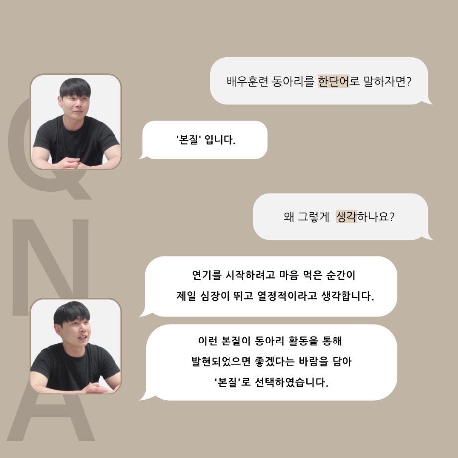 본문 시작 홈으로 커뮤니티 학과소개 입학정보 교수소개 학과과정 커뮤니티 공연예매 안내 홈페이지가이드 포토갤러리 공지사항 포토갤러리 작품DB 동아리 학사일정 학생회 포토갤러리 페이스북 트위터 프린트 '품'위있는 인'터뷰' - 24년도 배우훈련동아리장 <정성주> 연기예술학과 3512 2024-08-05 안녕하십니까. 24년도 학회 '품’ 입니다. 학회 ‘품’의 아홉 번째 인터뷰로 세명대학교 연기예술학과 24학년도 배우훈련 동아리장인 정성주 학우와 인터뷰 하는 시간을 가졌습니다. 배우훈련 동아리장이 된 계기와 동아리에서는 어떤 활동을 하고있는지, 앞으로의 계획은 무엇으며 동아리 부원들에게 전하고 싶은 말 등을 질문하는 시간을 가졌습니다. 앞으로 있을 인터뷰 컨텐츠인 ‘품터뷰’ 많은 사랑 부탁드립니다. 목록 이전'품'위있는 인'터뷰' - 24년도 뮤지컬동아리장 <정찬홍> 이전제천시 청년센터 청년테마특강 참가자 모집 담당부서 : 연기예술학과 담당자 : - 연락처 : 043-649-1733 최종수정일 : 2024-10-26 만족도조사 만족도 조사 이 페이지에서 제공하는 정보에 대하여 만족하시나요? 매우만족 만족 보통 불만족 매우불만족