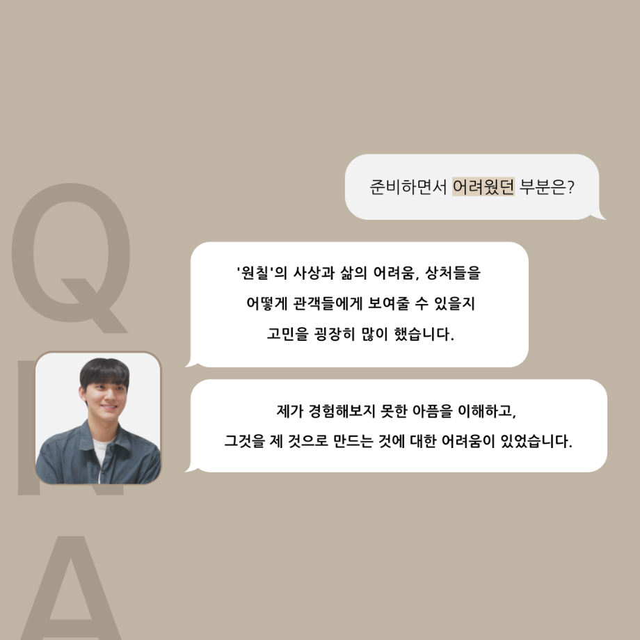 본문 시작 홈으로 커뮤니티 학과소개 입학정보 교수소개 학과과정 커뮤니티 공연예매 안내 홈페이지가이드 포토갤러리 공지사항 포토갤러리 작품DB 동아리 학사일정 학생회 포토갤러리 페이스북 트위터 프린트 '품'위있는 인'터뷰' - 24년도 젊은연극제 원칠役 <김은혁> 연기예술학과 3410 2024-08-13 안녕하십니까. 24년도 학회 ‘품’ 입니다. 학회 ‘품’의 열 두 번째 인터뷰로 세명대학교 연기예술학과 24학년도 젊은연극제 참가작 <혈맥> 원칠 역인 김은혁 학우와 인터뷰 하는 시간을 가졌습니다. 가장 좋아하는 장면, 자신의 배역을 제외하고 해보고 싶은 배역 그리고 준비하면서 어려웠던 부분과 공연을 마친 소감 등에 대해 인터뷰 하는 시간을 가졌습니다. 앞으로 있을 인터뷰 컨텐츠인 ‘품터뷰’ 많은 사랑 부탁드립니다. 목록 이전제6회 세명진로 Festival 대면 특강 안내 다음 연기예술학과 108회 정기공연 하계 프로젝트 <도덕적 도둑> 프로필 스틸컷 담당부서 : 연기예술학과 담당자 : - 연락처 : 043-649-1733 최종수정일 : 2024-10-26 만족도조사 만족도 조사 이 페이지에서 제공하는 정보에 대하여 만족하시나요? 매우만족 만족 보통 불만족 매우불만족