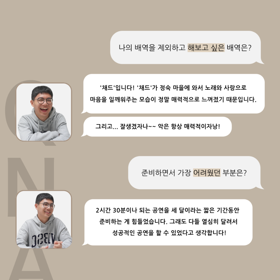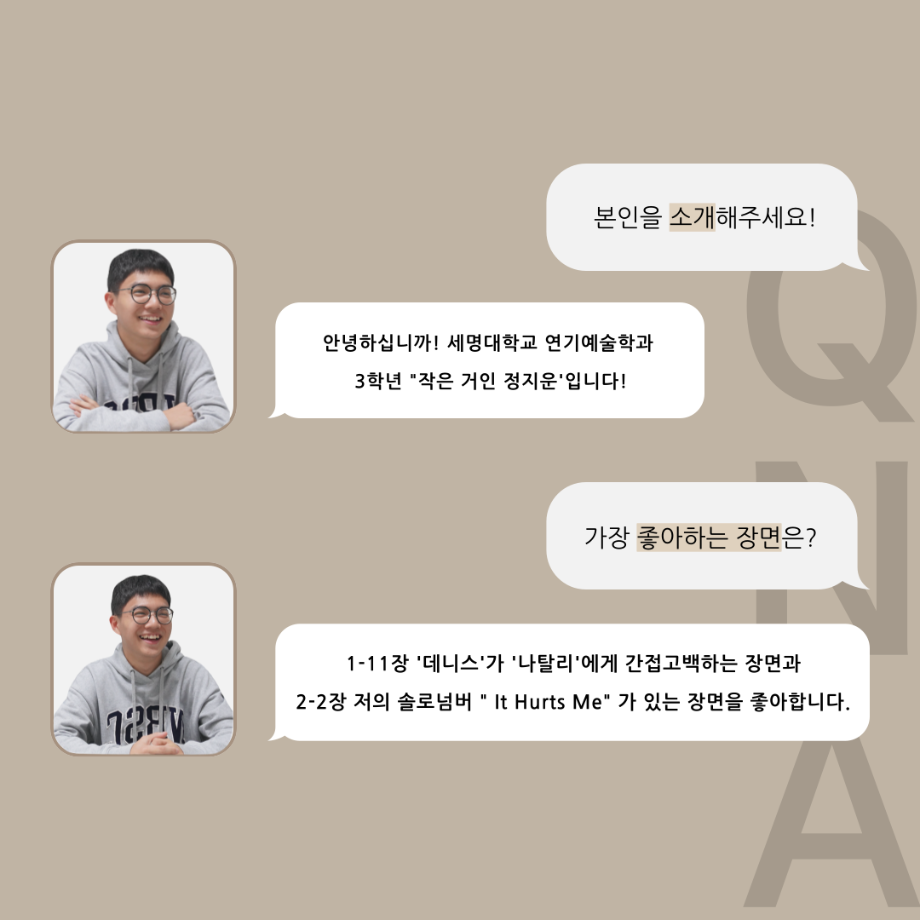 본문 시작 홈으로 커뮤니티 학과소개 입학정보 교수소개 학과과정 커뮤니티 공연예매 안내 홈페이지가이드 포토갤러리 공지사항 포토갤러리 작품DB 동아리 학사일정 학생회 포토갤러리 페이스북 트위터 프린트 ‘품’ 위 있는 인 ‘터뷰’ - 뮤지컬 제작실습 <올슉업> 데니스정지운 카드 뉴스 연기예술학과 2889 2025-01-17 . 목록 이전‘품’ 위 있는 인 ‘터뷰’ - 뮤지컬 제작실습 <올슉업> 나탈리 안수연 카드 뉴스 다음 2024학년도 공연영상학과 (현 연기예술학과) 학과수여식 담당부서 : 연기예술학과 담당자 : - 연락처 : 043-649-1733 최종수정일 : 2024-10-26 만족도조사 만족도 조사 이 페이지에서 제공하는 정보에 대하여 만족하시나요? 매우만족 만족 보통 불만족 매우불만족