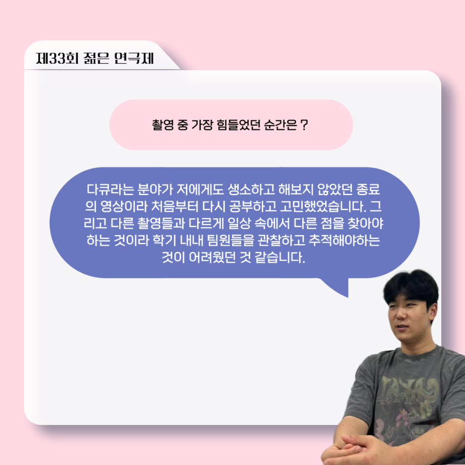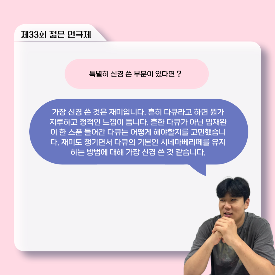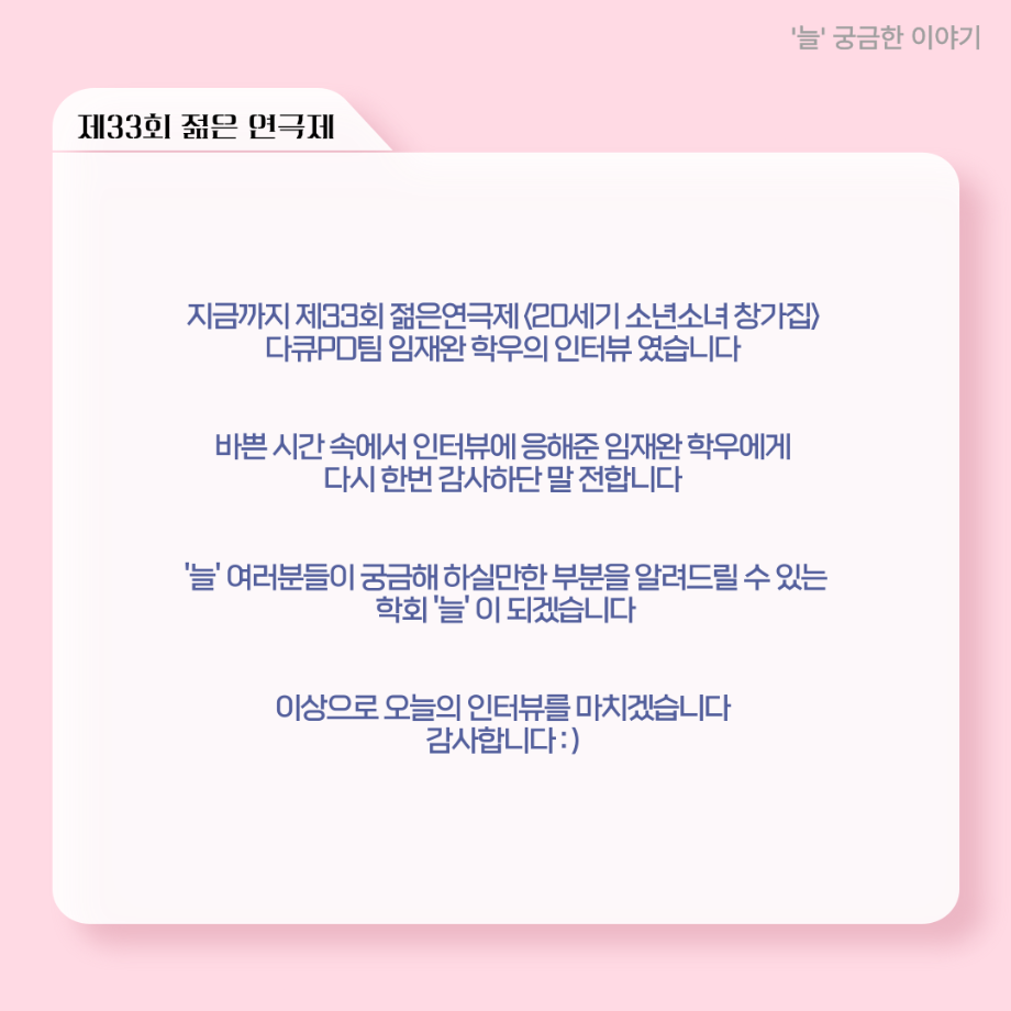 본문 시작 홈으로 커뮤니티 학과소개 입학정보 교수소개 학과과정 커뮤니티 공연예매 안내 홈페이지가이드 포토갤러리 공지사항 포토갤러리 작품DB 동아리 학사일정 학생회 포토갤러리 페이스북 트위터 프린트 ‘늘‘ 궁금한 이야기 - 젊은연극제 ‘20세기 소년소녀 창가집’ 다큐pd 役 < 임재완 > 연기예술학과 1137 2025-09-12 . 목록 이전‘늘‘ 궁금한 이야기 - 젊은연극제 ‘20세기 소년소녀 창가집’ 종이연극 아저씨 役 < 윤준호 > 다음 ‘늘‘ 궁금한 이야기 - 현장실습 < 이종서 > 담당부서 : 연기예술학과 담당자 : - 연락처 : 043-649-1733 최종수정일 : 2024-10-26 만족도조사 만족도 조사 이 페이지에서 제공하는 정보에 대하여 만족하시나요? 매우만족 만족 보통 불만족 매우불만족