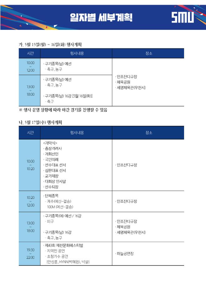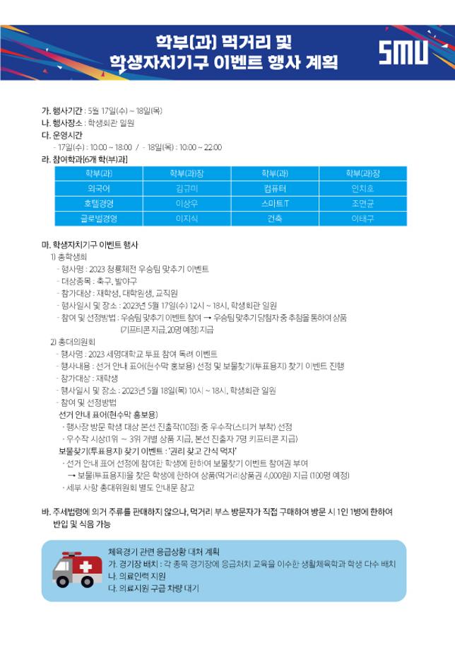 본문 시작 홈으로 학과소식 학과소개 취업정보 교육과정 학과소식 홈페이지가이드 포토갤러리 공지사항 포토갤러리 학과이야기 학과행사 포토갤러리 페이스북 트위터 프린트 세명대학교 제30회 청룡체전 회계세무학과 9182 2023-05-15 세명대학교 제30회 청룡축전!🎉 2023.05.17.(수)~19.(금) 체육대회와 더불어 먹거리 행사 및 다양한 이벤트도 함께 진행된다고 합니다😍 많은 관심과 참여 부탁드립니다!!! 목록 이전세명대학교 <등록금 책임환불제> 다음 2023학년도 세명대학교 하계방학 체류형 프로그램 개방 안내 담당부서 : 회계세무학과 담당자 : - 연락처 : 043-649-1244 최종수정일 : 2024-10-26 만족도조사 만족도 조사 이 페이지에서 제공하는 정보에 대하여 만족하시나요? 매우만족 만족 보통 불만족 매우불만족