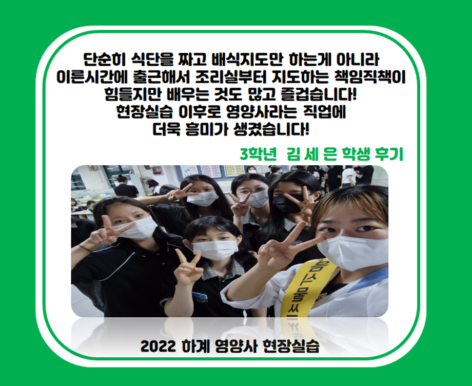 본문 시작 홈으로 커뮤니티 학부소개 진로·취업 교육과정 커뮤니티 대학원 입학상담 홈페이지가이드 갤러리 공지사항 갤러리 학생회 동문회 전공자료실 전공동아리 Youtube Instagram 갤러리 페이스북 트위터 프린트 2022 하계영양사 현장실습(동일여자고등학교) 바이오식품영양학부 2018 2022-07-13 목록 이전2022 하계영양사 현장실습(제천시청) 다음 2022 하계영양사 현장실습(목원푸드 코레일 승무원기숙식당) 담당부서 : 바이오식품영양학부 담당자 : - 연락처 : 043-649-1430 최종수정일 : 2024-10-26 만족도조사 만족도 조사 이 페이지에서 제공하는 정보에 대하여 만족하시나요? 매우만족 만족 보통 불만족 매우불만족