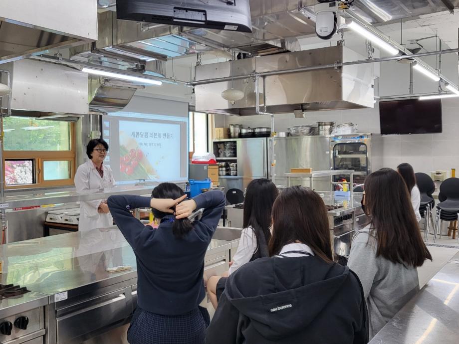 지난 5월 3일 우리 학부 황성희 학부장님과 민성희 교수님은 제천여자고등학교 학생들과 중등교육 연계프로그램의 일환으로 고교특강(전공체험)을 진행하셨다 황성희 학부장님은 ‘새콤달콤 레몬청 만들기- 과학의 원리’이라는 주제로 바이오학관 조리실에서, 민성희교수님은 ‘천연물 전통발효(장류제조) 전공체험 및 탐구토론’이라는 주제로 발효에듀센터에서 강의하셨다. 제천여자고등학교 학생들은 레몬청과 전통장을 만들어보면서 생활속에서 확인해보는 과학의 원리를 즐겁게 공부하였고 한편 세명대 바이오식품영양학부를 홍보하는 계기가 되었다.