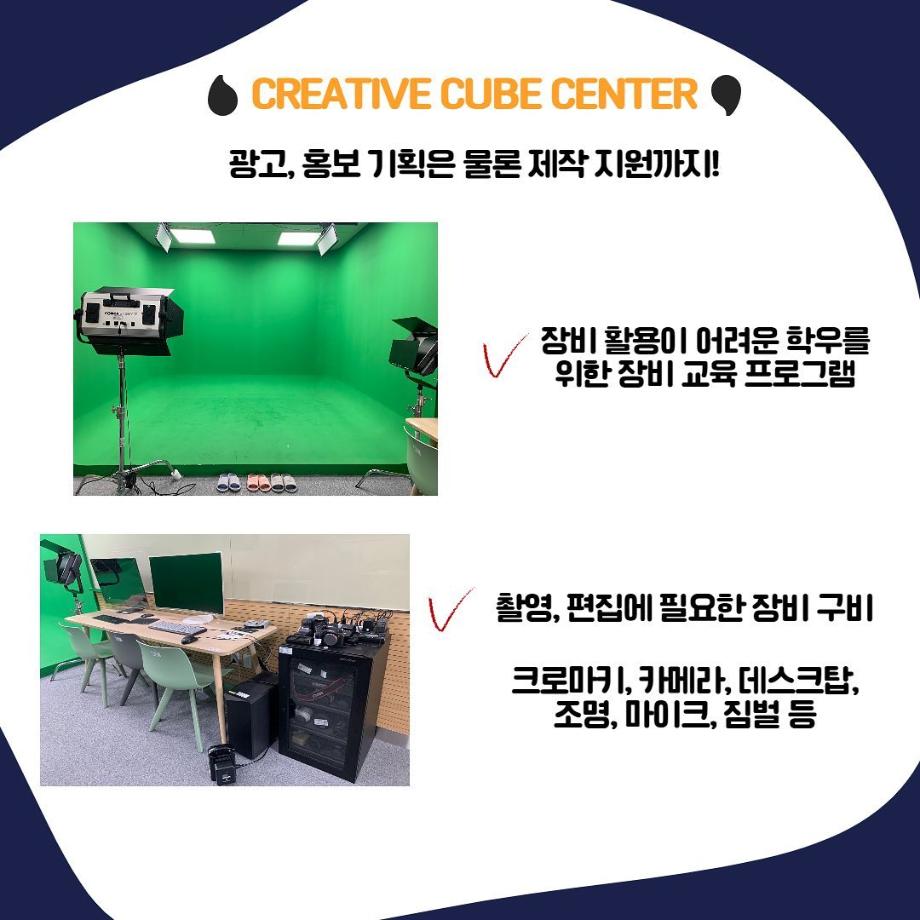 본문 시작 홈으로 특별CC프로그램 매력적인 학과소개 흥미로운 교육과정 특별CC프로그램 We can 취업 따뜻한 커뮤니티 홈페이지가이드 광고영상 제작실습 광고영상 제작실습 광고디자인 자격증취득 C&E(도전!경험!) 광고영상 제작실습 페이스북 트위터 프린트 크리에이티브 스튜디오2 광고홍보학과 2510 2022-08-30 크로마키 스튜디오, 맥컴퓨터, 소니 카메라/캠코더 등 마음껏 광고영상 만들어 보세요 : ) 목록 이전광고홍보학과실습실_크리에이티브 스튜디오 다음 광고영상제작편집프로그램