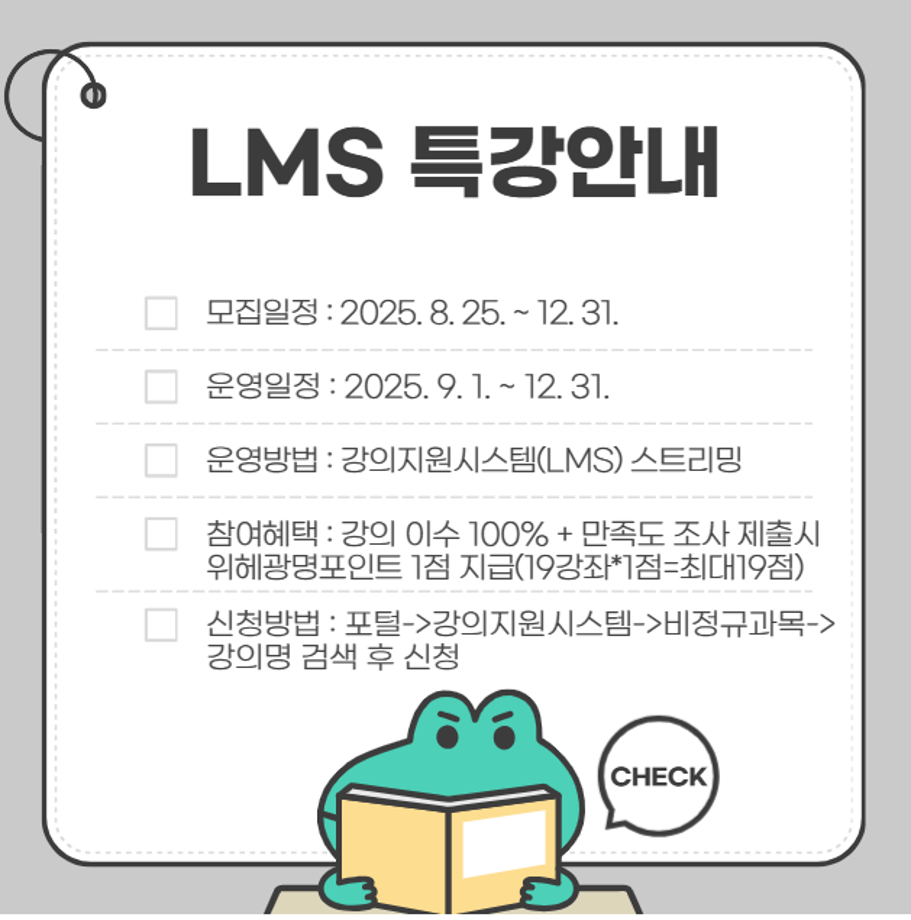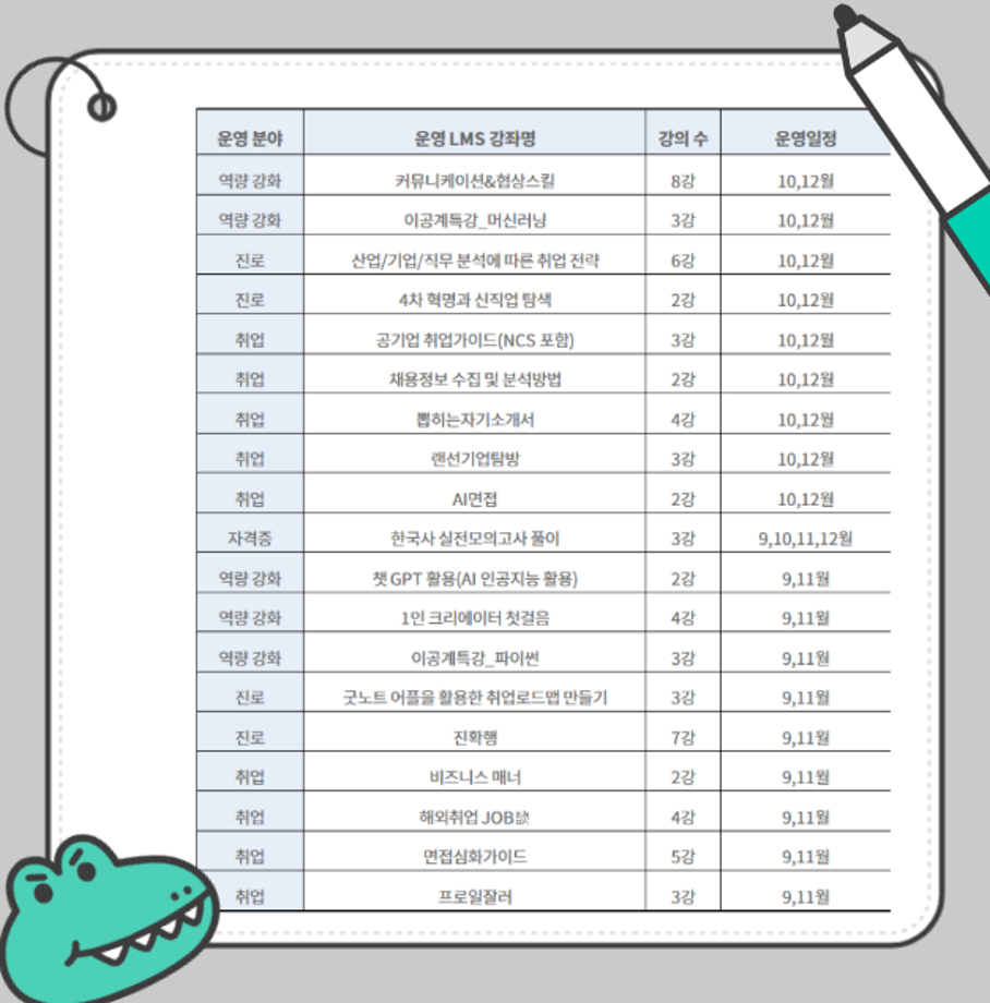 본문 시작 홈으로 We can 취업 매력적인 학과소개 흥미로운 교육과정 특별CC프로그램 We can 취업 따뜻한 커뮤니티 홈페이지가이드 취업지원프로그램 채용정보 취업지원프로그램 광고업계 회사소개 취업지원프로그램 페이스북 트위터 프린트 ★ [2025 대일플] 2025학년도 2학기 진로·취업 LMS 특강 안내 ★ 광고홍보학과 430 2025-09-05 대학일자리플러스센터 진로, 취업 지원 프로그램 목록 이전[디지털마케터취업교육생모집]한국디지털광고협회_취업연계교육 다음 ★위세광명포인트 5점★ 2025학년도 취업대비 영어인터뷰 교실 수강생 모집 안내