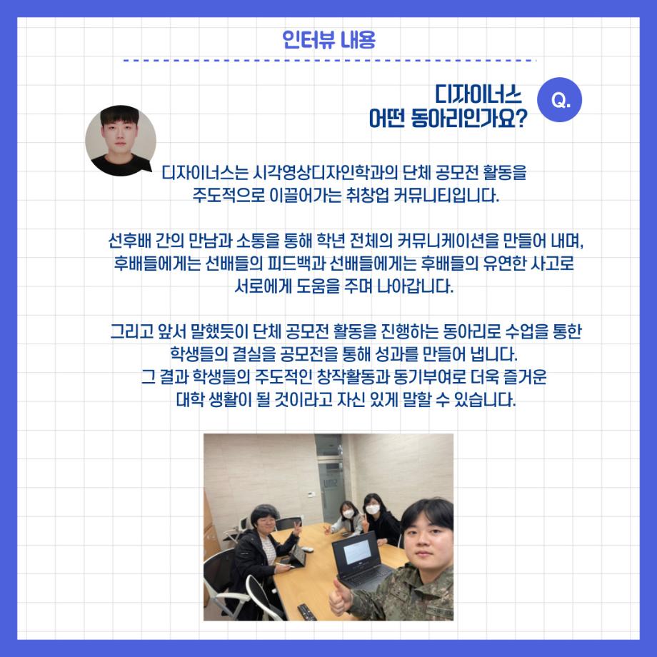 본문 시작 홈으로 학과자랑 학과소개 학과과정 시영소식 입학/취업 AI 학과자랑 SNS소통 홈페이지가이드 공모전 동아리 학과자랑 갤러리 공모전 동아리 졸업전시회 DesingN_us 외 DesingN_us 외 DesingN_us 외 페이스북 트위터 프린트 시각영상디자인학과 동아리 소개_디자이너스 시각영상디자인학과 2737 2023-05-15 목록 이전시각영상디자인학과 동아리 소개_스터디자인 다음 시영 동아리 활동 사진 담당부서 : 시각영상디자인학과 담당자 : - 연락처 : 043-649-1726 최종수정일 : 2024-10-26 만족도조사 만족도 조사 이 페이지에서 제공하는 정보에 대하여 만족하시나요? 매우만족 만족 보통 불만족 매우불만족