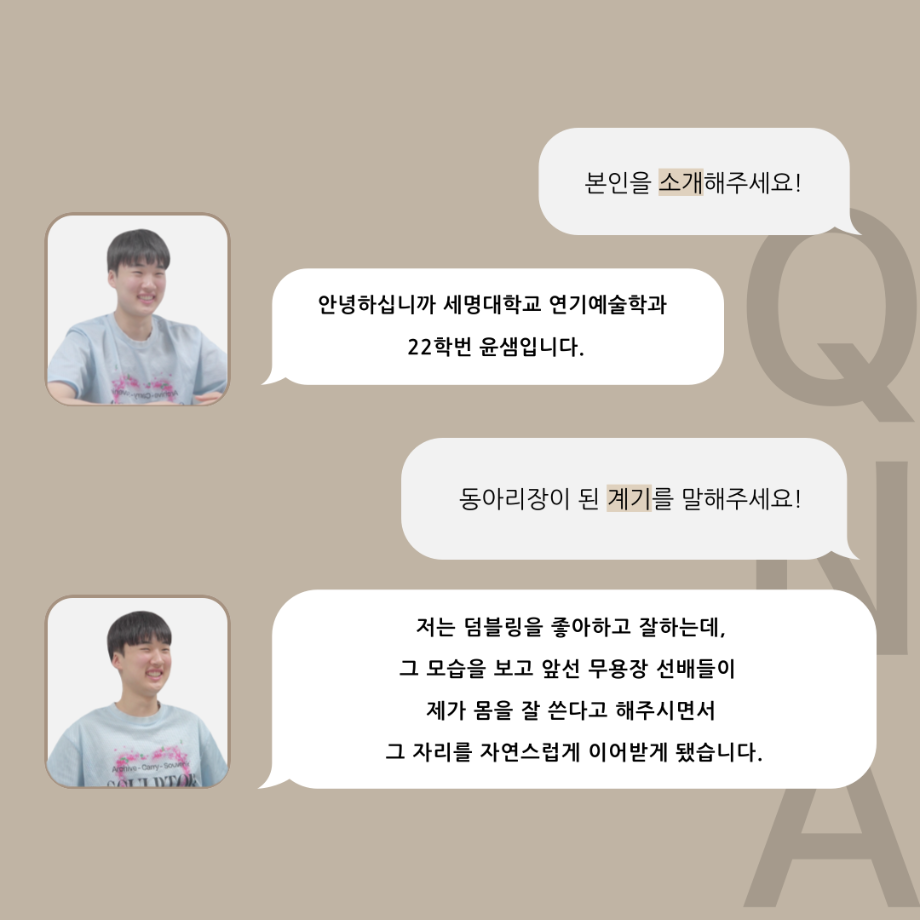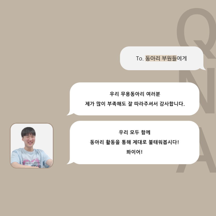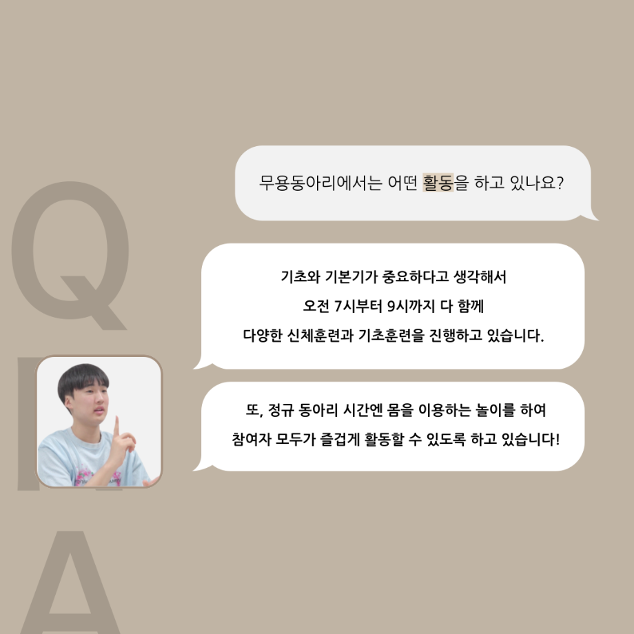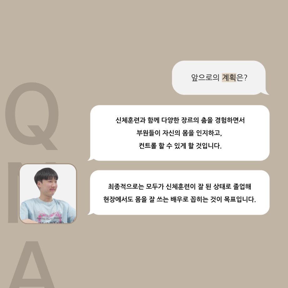 본문 시작 홈으로 커뮤니티 학과소개 입학정보 교수소개 학과과정 커뮤니티 공연예매 안내 홈페이지가이드 동아리 공지사항 포토갤러리 작품DB 동아리 학사일정 학생회 무용 동아리 무용 동아리 뮤지컬 동아리 극장 스탭 동아리 배우 훈련 동아리 무용 동아리 페이스북 트위터 프린트 '품'위있는 인'터뷰' - 24년도 무용동아리장 <윤샘> 연기예술학과 3491 2024-07-29 안녕하십니까. 24년도 학회 ‘품‘ 입니다. 학회 ‘품’의 일곱 번째 인터뷰로 세명대학교 연기예술학과 24학년도 무용동아리장인 윤샘 학우와 인터뷰 하는 시간을 가졌습니다. 무용 동아리장이 된 계기와 동아리에서는 어떤 활동을 하고있는지, 앞으로의 계획은 무엇으며 동아리 부원들에게 전하고 싶은 말 등을 질문하는 시간을 가졌습니다. 앞으로 있을 인터뷰 컨텐츠인 ‘품터뷰’ 많은 사랑 부탁드립니다. 목록 이전2024년도 1학기 무용동아리 - 화란 활동! 다음 2025년도 1학기 무용동아리 화란 만족도조사 만족도 조사 이 페이지에서 제공하는 정보에 대하여 만족하시나요? 매우만족 만족 보통 불만족 매우불만족