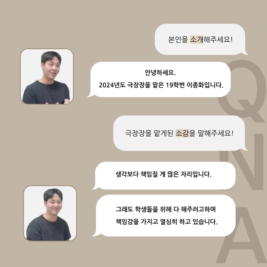 본문 시작 홈으로 커뮤니티 학과소개 입학정보 교수소개 학과과정 커뮤니티 공연예매 안내 홈페이지가이드 동아리 공지사항 포토갤러리 작품DB 동아리 학사일정 학생회 극장 스탭 동아리 무용 동아리 뮤지컬 동아리 극장 스탭 동아리 배우 훈련 동아리 극장 스탭 동아리 페이스북 트위터 프린트 ’품‘위있는 인’터뷰‘ - 24년도 극장장 <이종화> 연기예술학과 2513 2024-07-12 안녕하십니다. 24년도 학회 ‘품‘ 입니다. 학회 ‘품’의 세 번째 인터뷰로 세명대학교 연기예술학과 24학년도 극장장인 이종화 학우와 인터뷰 하는 시간을 가졌습니다. 극장장을 맡게된 소감과 극장은 어떤 의미가 있는지, 파트장과 학과생에게 전하고 싶은 말 등을 질문하는 시간을 가졌습니다. 앞으로 있을 인터뷰 컨텐츠인 ‘품터뷰’ 많은 사랑 부탁드립니다. 목록 이전세명대학교 연기예술학과 극장동아리 ‘짜스트’ - 무대, 조명 다음 ’품‘위있는 인’터뷰‘ - 24년도 무대장 <장보배> 만족도조사 만족도 조사 이 페이지에서 제공하는 정보에 대하여 만족하시나요? 매우만족 만족 보통 불만족 매우불만족