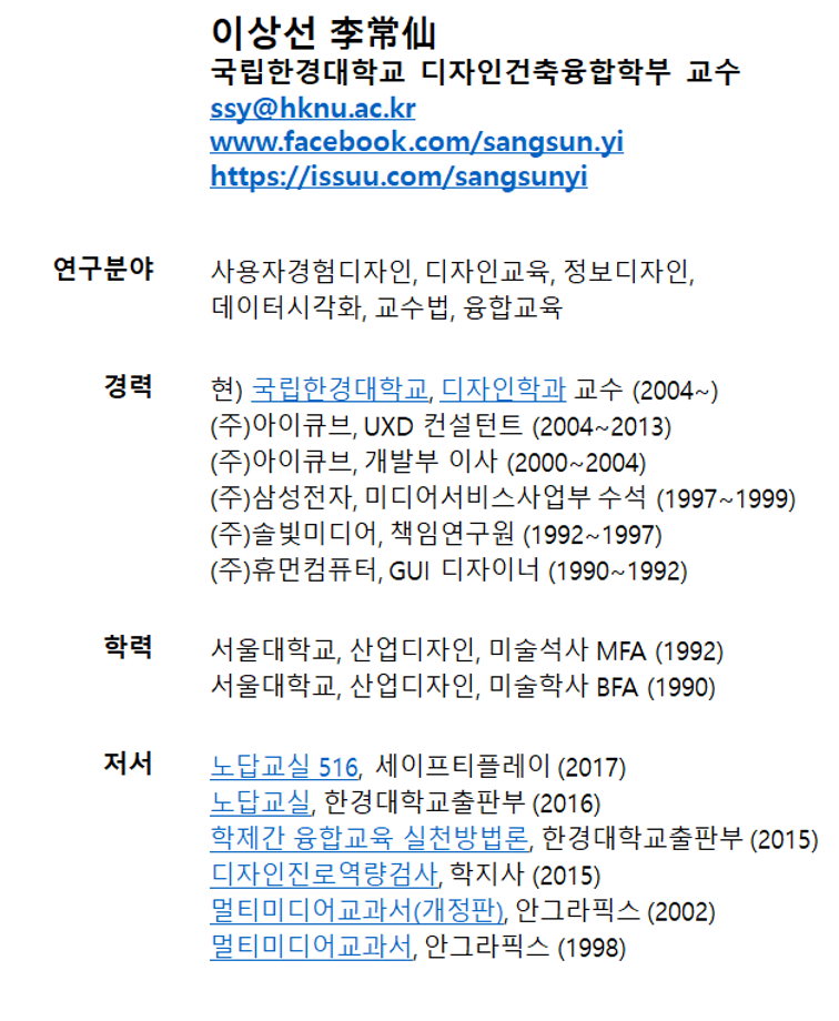 본문 시작 홈으로 시영소식 학과소개 학과과정 시영소식 입학/취업 AI 학과자랑 SNS소통 홈페이지가이드 학과행사 공지사항 학과행사 공모전 학생 인터뷰 학과행사 페이스북 트위터 프린트 시각실무체험 2022년도 학술특강 1 시각영상디자인학과 2780 2022-03-03 한경대 사용자경험 디자인산학협력 사례 일시 : 2022년 3월 15일 11시 디자인관 501호 이상선 교수님 (국립 한경대 디자인학과) 목록 이전강원랜드 하이원 사인시스템 특강 다음 (특강)병원의 서비스디자인 어떻게 시작할까? 연세대학교 산업디자인전공 이주명 교수님 담당부서 : 시각영상디자인학과 담당자 : - 연락처 : 043-649-1726 최종수정일 : 2024-10-26 만족도조사 만족도 조사 이 페이지에서 제공하는 정보에 대하여 만족하시나요? 매우만족 만족 보통 불만족 매우불만족