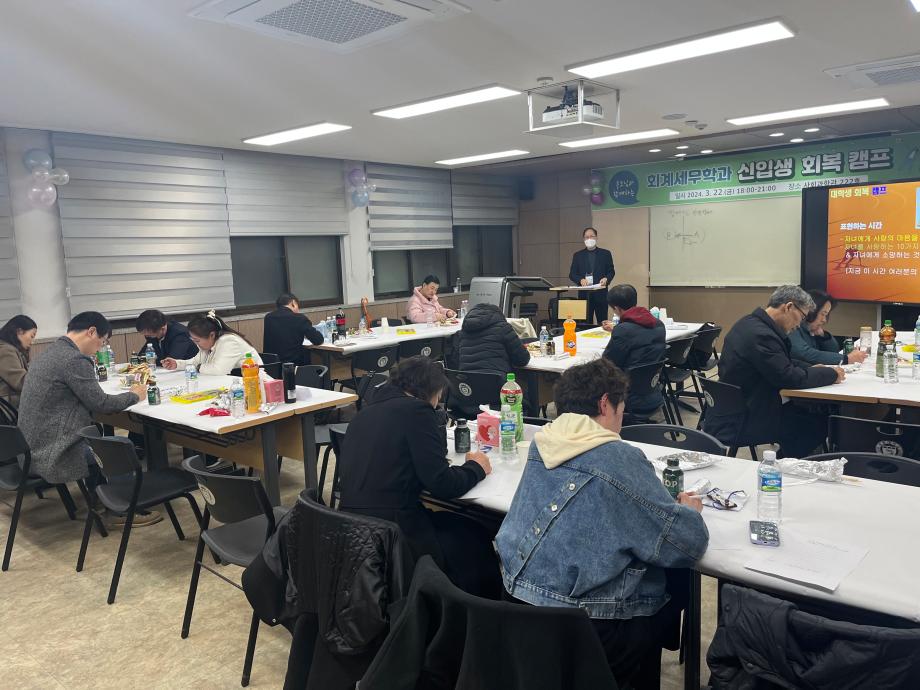 본문 시작 홈으로 학과소식 학과소개 취업정보 교육과정 학과소식 홈페이지가이드 학과행사 공지사항 포토갤러리 학과이야기 학과행사 학과행사 페이스북 트위터 프린트 2024학년도 회계세무학과 신입생 회복캠프 회계세무학과 1519 2024-03-28 2024년 3월 22일(금) 회계세무학과 신입생 회복캠프 목록 이전2024학년도 회계세무학과 신입생 환영회 다음 세명대학교 회계학과 졸업생 방문 만족도조사 만족도 조사 이 페이지에서 제공하는 정보에 대하여 만족하시나요? 매우만족 만족 보통 불만족 매우불만족