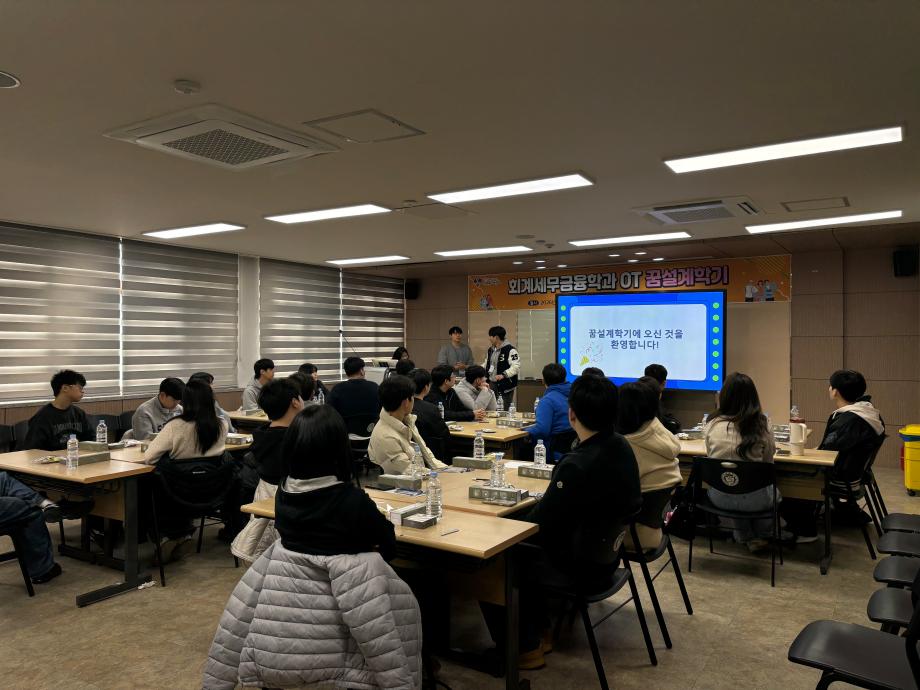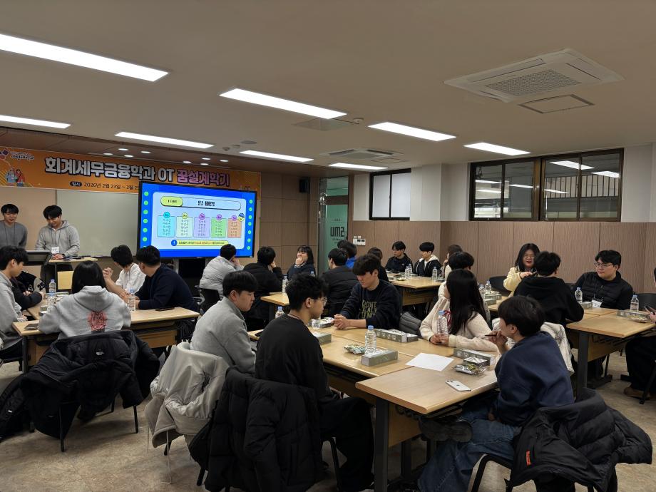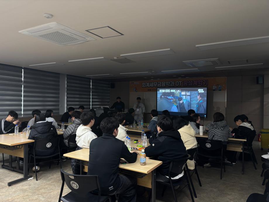 본문 시작 홈으로 학과소식 학과소개 취업정보 교육과정 학과소식 홈페이지가이드 학과행사 공지사항 포토갤러리 학과이야기 학과행사 학과행사 페이스북 트위터 프린트 2026 회계세무금융학과 꿈설계학기 회계세무금융학과 100 2026-02-26 2026.02.23(월)~2026.02.25(수) 회계세무금융학과 꿈설계학기를 진행하였습니다! 회계세무금융학과 학생분들 입학을 축하드립니다❤️ 목록 이전2025학년도 2학기 기말고사 간식사업 다음 회계세무금융학과 개강파티 만족도조사 만족도 조사 이 페이지에서 제공하는 정보에 대하여 만족하시나요? 매우만족 만족 보통 불만족 매우불만족