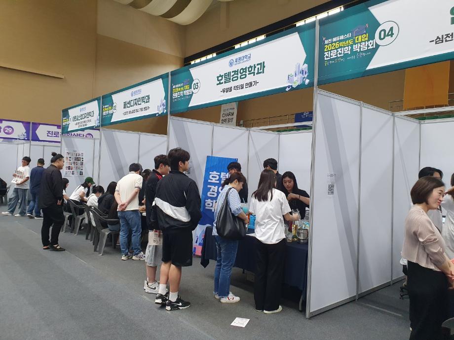 본문 시작 홈으로 학과소개 커뮤니티 학과소개 교육 홈페이지가이드 학과행사 학과장인사말 교수소개 학과행사 학과행사 페이스북 트위터 프린트 2026년 제천에듀페스타 대입진로진학 박람회_호텔경영학과 호텔경영학과 1046 2025-06-16 2026년 제천에듀페스타 대입진로진학 박람회_호텔경영학과 목록 이전2025년 교직이수 학생 교생실습_한국호텔관광고등학교 다음 2025년 세명대학교 하계 교직원 워크숍 만족도조사 만족도 조사 이 페이지에서 제공하는 정보에 대하여 만족하시나요? 매우만족 만족 보통 불만족 매우불만족