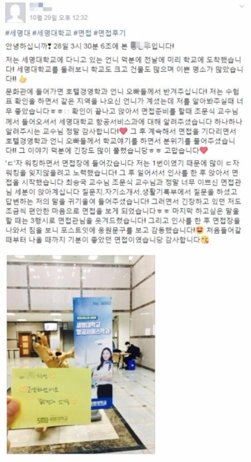 본문 시작 홈으로 학과소개 학과소개 입학정보 교과과정 커뮤니티 홈페이지가이드 학과행사 학과장인사말 학과인재상 전공소개 교수진소개 실습시설 학과행사 진로 학과행사 페이스북 트위터 프린트 세명항공- 면접후기 항공서비스학과 1956 2016-12-28 세명대학교 항공서비스학과 면접자 후기 목록 다음 윙수여식