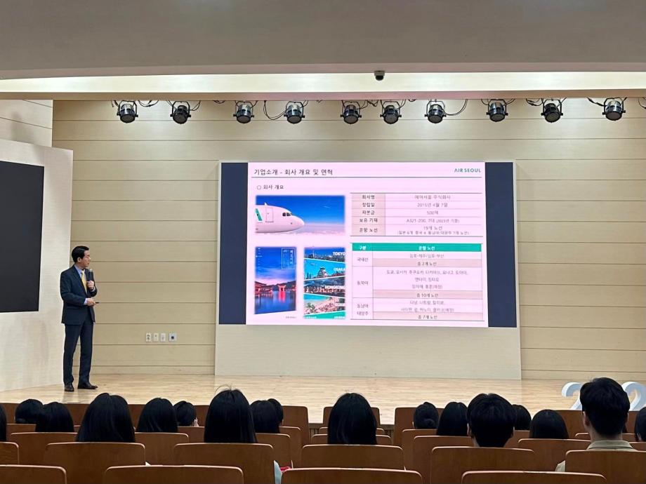 지난 5월 11일, 세명대학교 항공서비스학과에서 에어서울 캐빈승무원 팀장님의 특강이 진행되었습니다 💚