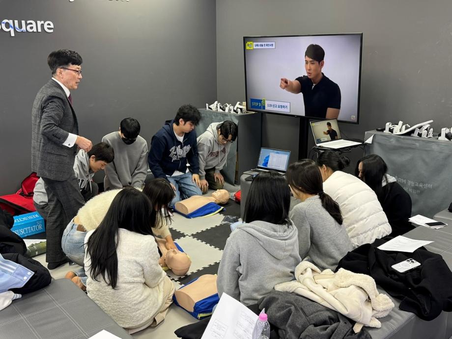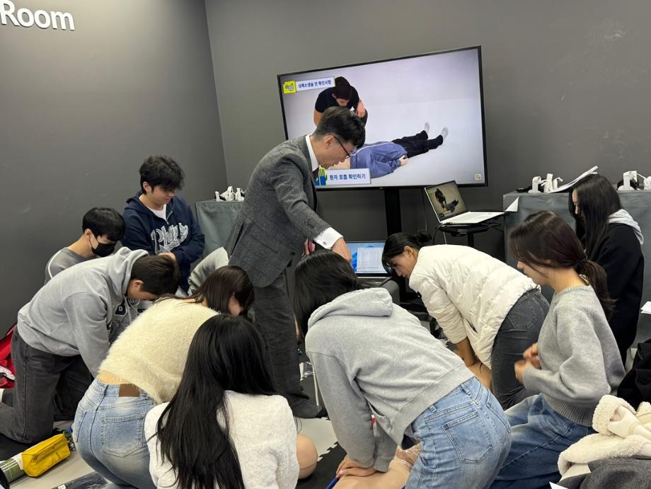 교육은 실제 환경을 재연하며 진행되었으며 모든 학생들이 CPR뿐만 아니라 자동심실제세동기를 통해 전기 충격을 주고 산소호흡기 사용법, 인공호흡 방법 등을 자세하게 배울 수 있었습니다