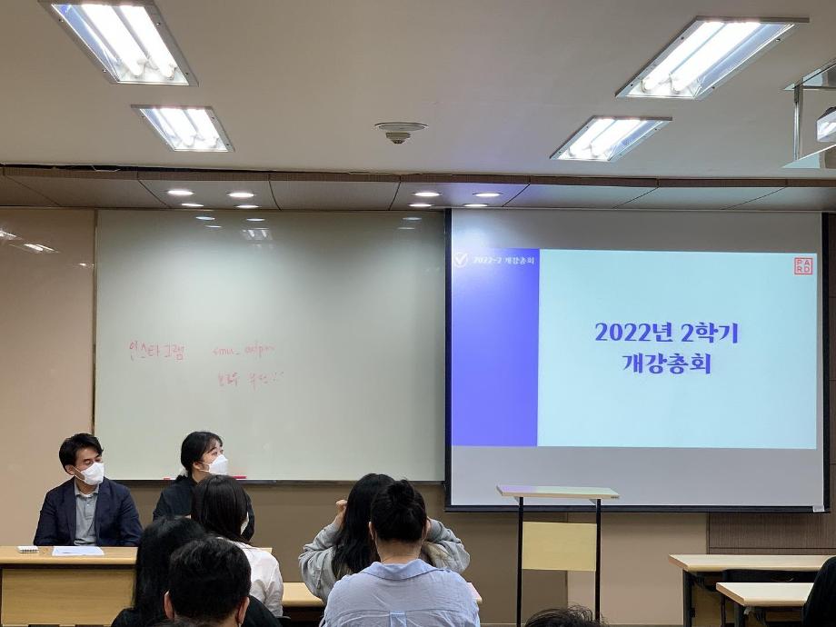 본문 시작 홈으로 매력적인 학과소개 매력적인 학과소개 흥미로운 교육과정 특별CC프로그램 We can 취업 따뜻한 커뮤니티 홈페이지가이드 지금 우리 광홍은 학과개요 학과연혁 교수소개 Wilco로 보는광고홍보학과 지금 우리 광홍은 지금 우리 광홍은 페이스북 트위터 프린트 2022년도 2학기 개강 총회 광고홍보학과 2717 2022-09-16 2022학년도 2학기 개강 총회를 개최했습니다. 2학기 학과 행사 일정 소개와 총회에 오신 학생을 위한 간단한 상품권 추첨 이벤트도 개최했습니다. _일시 : 2022년 9월 6일(화), 18:30 _장소 : 사회과학관 405호 _참석 : 교수님, 학생 1~4학년 목록 이전부산국제광고제 참관 & 학과 홍보부스 운영 다음 2022년도 광고홍보 취업 특강 시리즈 1탄