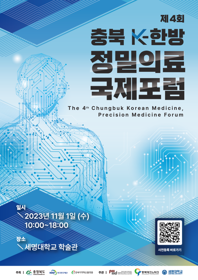 “제4회 충북 K-한방 정밀의료 국제포럼”이 세명대학교 학술관에서 개최됩니다.