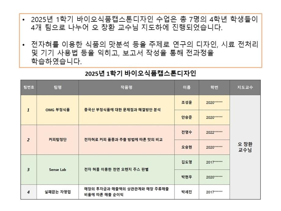 본문 시작 홈으로 학부소개 학부소개 진로·취업 교육과정 커뮤니티 대학원 입학상담 홈페이지가이드 갤러리 학부비전 학부장 인사말 학부연혁 학부장점 교수소개 교육시설 MOU 체결 갤러리 갤러리 페이스북 트위터 프린트 2025년 1학기 바이오캡스톤디자인 바이오식품영양학부 624 2025-06-21 목록 이전HACCP교육 이전20250507 제천고 진로아카데미전문가특강(오창환교수님) 만족도조사 만족도 조사 이 페이지에서 제공하는 정보에 대하여 만족하시나요? 매우만족 만족 보통 불만족 매우불만족
