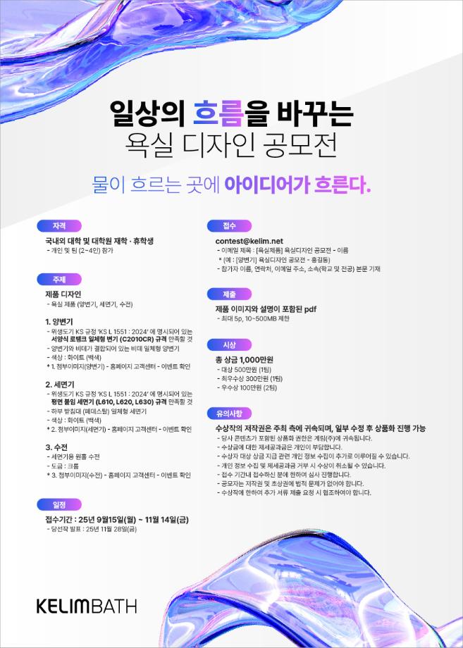 - 이메일 제목 : [욕실제품] 욕실디자인 공모전 - 이름