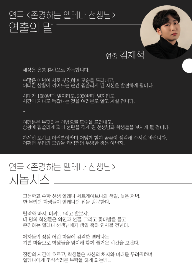 본문 시작 홈으로 학과과정 학과소개 입학정보 교수소개 학과과정 커뮤니티 공연예매 안내 홈페이지가이드 비교과프로그램 교육과정 전공교육 체계도 비교과프로그램 MOU 체결 하계, 동계 프로젝트 하계, 동계 프로젝트 연극놀이 지도사 양성 교육 현장실습 프로그램 액팅플러스 하계, 동계 프로젝트 페이스북 트위터 프린트 2021학년도 동계 프로젝트 '존경하는 엘레나 선생님' 연기예술학과 2567 2021-03-09 목록 다음 2021학년도 동계 프로젝트 ‘넥스트 투 노멀’ 만족도조사 만족도 조사 이 페이지에서 제공하는 정보에 대하여 만족하시나요? 매우만족 만족 보통 불만족 매우불만족