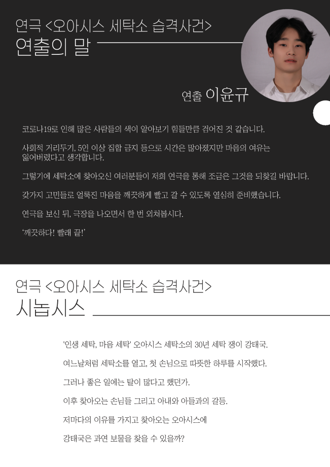 본문 시작 홈으로 학과과정 학과소개 입학정보 교수소개 학과과정 커뮤니티 공연예매 안내 홈페이지가이드 비교과프로그램 교육과정 전공교육 체계도 비교과프로그램 MOU 체결 하계, 동계 프로젝트 하계, 동계 프로젝트 연극놀이 지도사 양성 교육 현장실습 프로그램 액팅플러스 하계, 동계 프로젝트 페이스북 트위터 프린트 2021학년도 동계 프로젝트 ‘오아시스 세탁소 습격사건’ 연기예술학과 2540 2021-04-29 목록 이전2021학년도 동계 프로젝트 ‘자살에 관하여’ 다음 2021학년도 하계 프로젝트 ' 쇼팔로비치 유랑극단' 만족도조사 만족도 조사 이 페이지에서 제공하는 정보에 대하여 만족하시나요? 매우만족 만족 보통 불만족 매우불만족