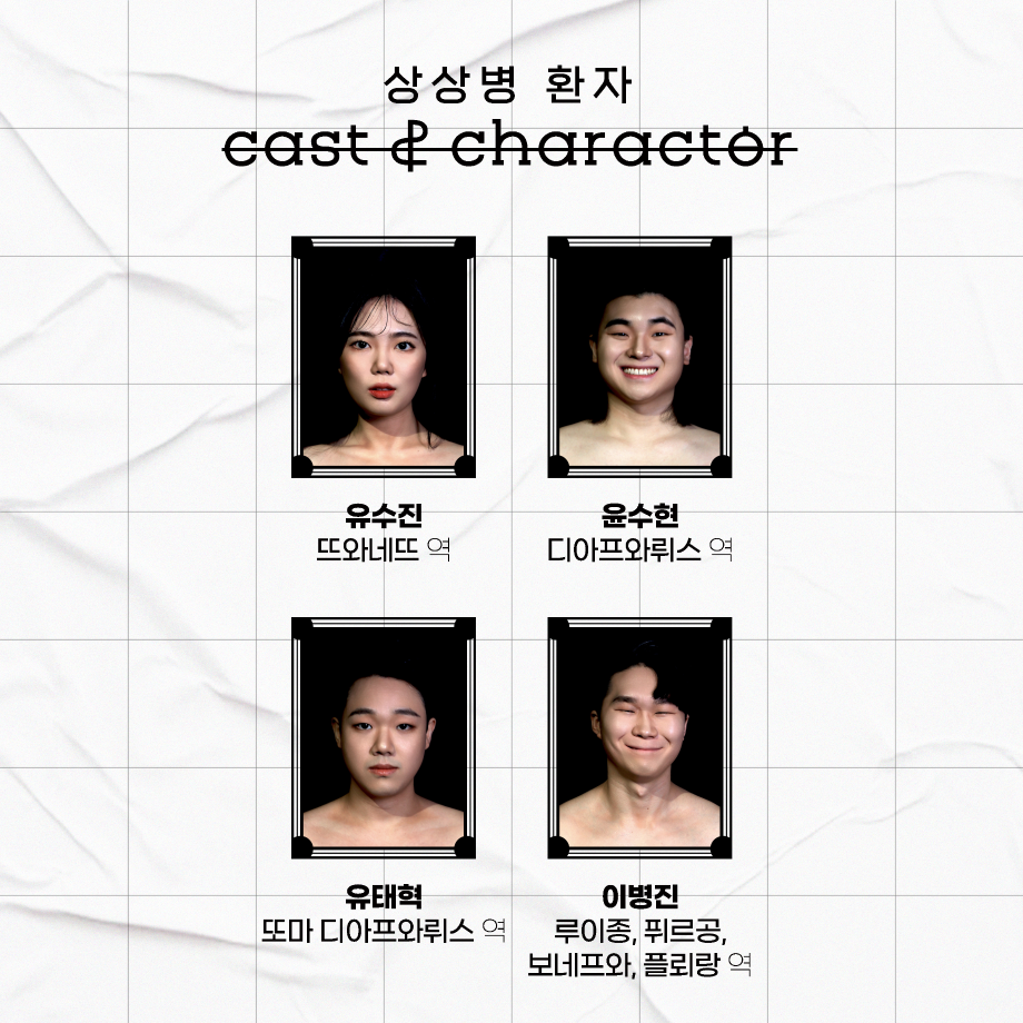 본문 시작 홈으로 학과과정 학과소개 입학정보 교수소개 학과과정 커뮤니티 공연예매 안내 홈페이지가이드 비교과프로그램 교육과정 전공교육 체계도 비교과프로그램 MOU 체결 하계, 동계 프로젝트 하계, 동계 프로젝트 연극놀이 지도사 양성 교육 현장실습 프로그램 액팅플러스 하계, 동계 프로젝트 페이스북 트위터 프린트 '동계 프로젝트 - 끝서리' 스틸컷 연기예술학과 3405 2022-02-11 ❄️ 제 80회 세명대학교 연기예술학과 정기공연 - 동계 프로젝트 '끝서리' 첫 번째 작품 <상상병 환자> 캐스팅 보드 ❄️ - 첫번째 작품 | 상상병 환자 두번째 작품 | R.U.R 세섯번째 작품 | 그 여자들, 다시 통닭을 먹다 - 본 공연은 방역 수칙을 준수하여 준비하였습니다. 여러분의 많은 관심과 참여 부탁드립니다. 목록 이전'동계 프로젝트 - 끝서리' 스틸컷 다음 '동계 프로젝트 - 끝서리' 스틸컷 만족도조사 만족도 조사 이 페이지에서 제공하는 정보에 대하여 만족하시나요? 매우만족 만족 보통 불만족 매우불만족