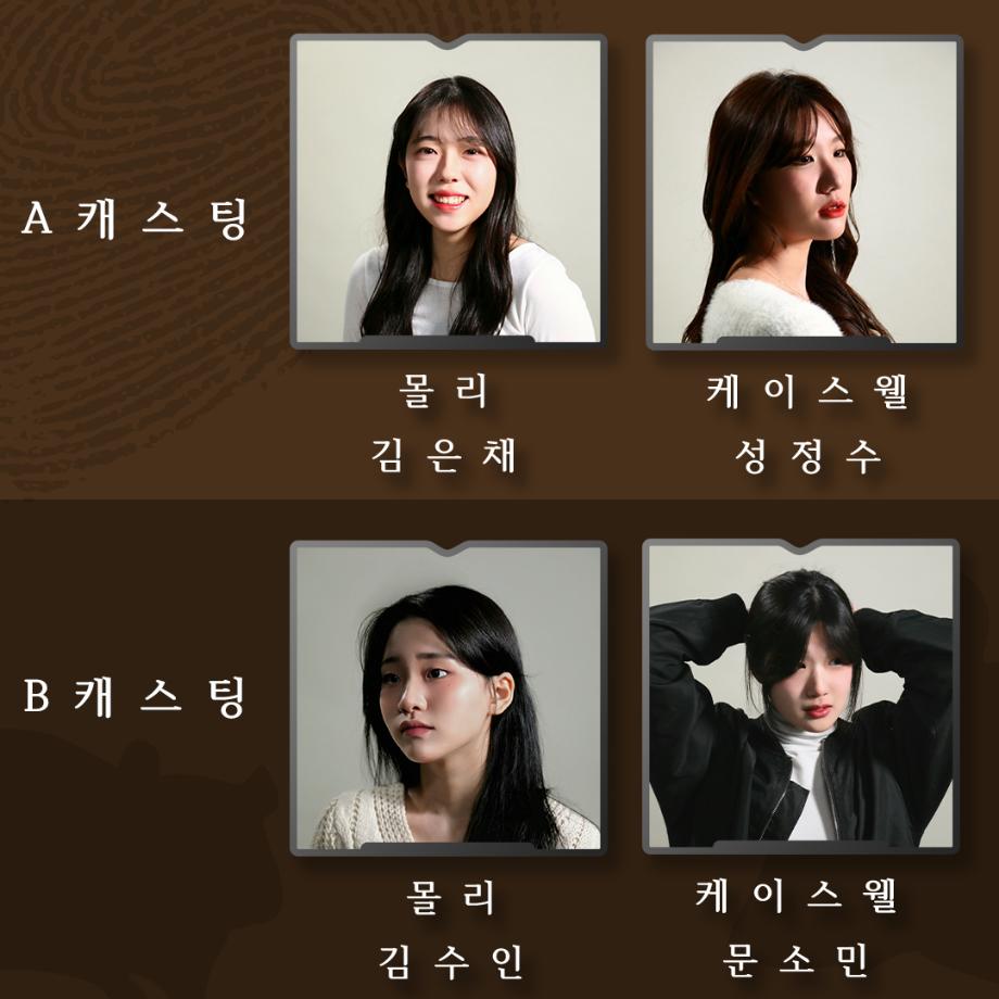 본문 시작 홈으로 학과과정 학과소개 입학정보 교수소개 학과과정 커뮤니티 공연예매 안내 홈페이지가이드 비교과프로그램 교육과정 전공교육 체계도 비교과프로그램 MOU 체결 하계, 동계 프로젝트 하계, 동계 프로젝트 연극놀이 지도사 양성 교육 현장실습 프로그램 액팅플러스 하계, 동계 프로젝트 페이스북 트위터 프린트 연기예술학과 104회 정기공연 동계 프로젝트 <쥐덫> 캐스트 연기예술학과 3095 2024-02-28 "자, 다들 모여보세요. 제가 범인을 찾았습니다." - 공연일시ᅠ A CAST 03.02(토) 15:00 03.03(일) 18:00 B CAST 03.02(토) 19:00 03.03(일) 14:00 세명대학교 공학관 5층, 태양아트홀 - 첫 번째 작품 | 올모스트 메인 두 번째 작품 | 쥐덫 세 번째 작품 | 천국으로 가는 길 예매링크는 해당 인스타 소개글에서 확인할 수 있습니다. 목록 이전연기예술학과 104회 정기공연 동계 프로젝트 <쥐덫> 포스터 다음 연기예술학과 104회 정기공연 동계 프로젝트 <쥐덫> 대본 리딩 연습 스케치 영상 만족도조사 만족도 조사 이 페이지에서 제공하는 정보에 대하여 만족하시나요? 매우만족 만족 보통 불만족 매우불만족