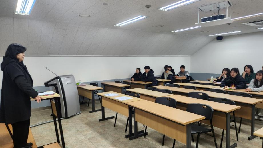 본문 시작 홈으로 학과과정 학과소개 입학정보 교수소개 학과과정 커뮤니티 공연예매 안내 홈페이지가이드 비교과프로그램 교육과정 전공교육 체계도 비교과프로그램 MOU 체결 연극놀이 지도사 양성 교육 하계, 동계 프로젝트 연극놀이 지도사 양성 교육 현장실습 프로그램 액팅플러스 연극놀이 지도사 양성 교육 페이스북 트위터 프린트 2023년 연극놀이지도사 2급 자격증 연기예술학과 3164 2023-12-11 지난 12월 10일 2023년도 연극놀이지도사 자격증 취득을 위한 수업이 마무리 되었습니다. (사)한국임상연극심리치료협회에서 주관하는 연극 놀이 지도사 자격증 교육과정은 연극놀이의 기본적인 개념을 이해하고 이론과 실기를 통해 체험해 창의적인 수업 모형을 개발하고 적용할 수 있는 기본 역량을 키우는 프로그램입니다. 이정하 교수님, 김영미 교수님과 함께한 실습을 통해 '연극놀이지도사'에 대해 자세히 알게 되고 배울 수 있었던 시간이였습니다. 목록 이전(사단법인)한국임상연극심리치료협회에서 주관하는 연극놀이지도사 2급 자격증 수료 다음 연극놀이 지도사 자격증 1급 전원 합격 만족도조사 만족도 조사 이 페이지에서 제공하는 정보에 대하여 만족하시나요? 매우만족 만족 보통 불만족 매우불만족