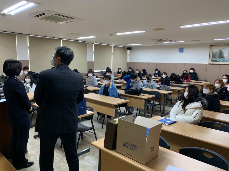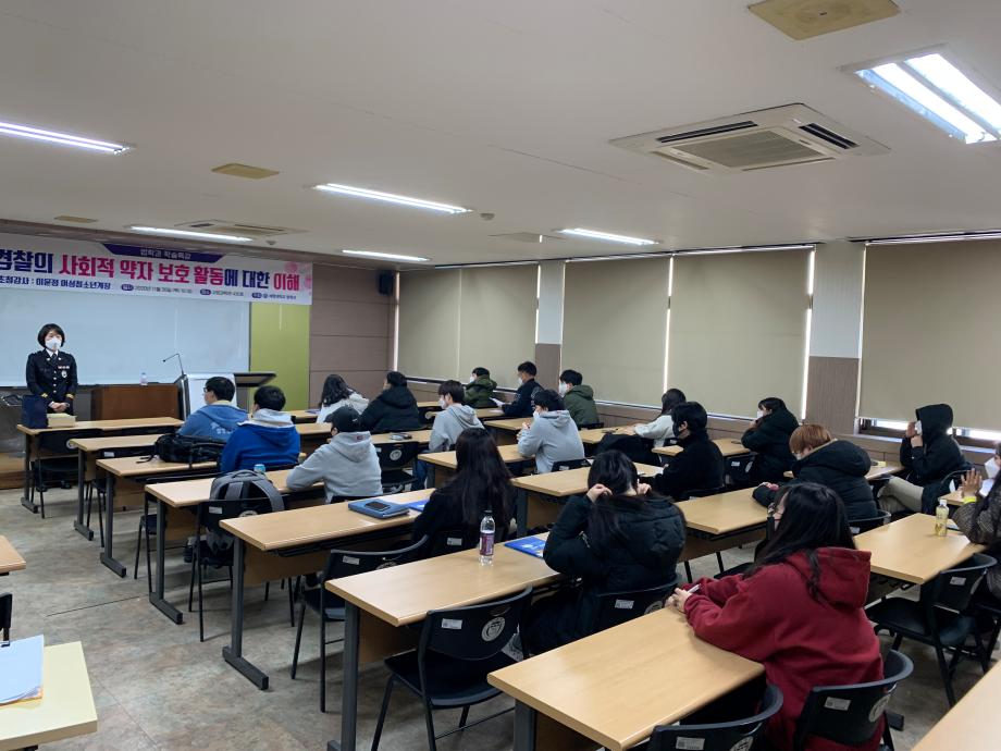 본문 시작 홈으로 학과과정 학과안내 교수소개 학과과정 커뮤니티 홈페이지가이드 비교과프로그램 교육과정 전공교육 체계도 대학원 법학과 비교과프로그램 학사일정 공공법무 지원프로그램 공공법무 지원프로그램 기업법무 지원프로그램 공공법무 지원프로그램 페이스북 트위터 프린트 2020.11.19 경찰 공무원 특강 법학과 3342 2020-11-19 2020년 11월 19일 이윤정 경감님을 모시고 ' 경찰의 사회적 약자 보호 활동에 대한 이해' 이라는 주제로 특강을 진행하였습니다. 목록 다음 2020.11.26 일반공무원 특강 다음 2020.11.19 공인노무사 특강 담당부서 : 법학과 담당자 : - 연락처 : 043-649-1764 최종수정일 : 2024-10-26 만족도조사 만족도 조사 이 페이지에서 제공하는 정보에 대하여 만족하시나요? 매우만족 만족 보통 불만족 매우불만족