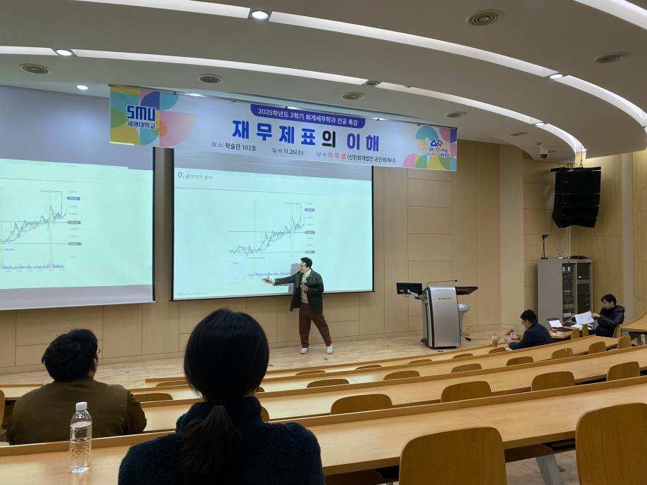 본문 시작 홈으로 교육과정 학과소개 취업정보 교육과정 학과소식 홈페이지가이드 비교과프로그램 교육과정 전공교육 체계도 비교과프로그램 전산회계 특강 전산회계 특강 전산세무 특강 회계 및 세무 공무원 특강 회계 및 세무 분야 진로 특강 전산회계 특강 페이스북 트위터 프린트 2025학년도 2학기 회계세무금융학과 전산회계 특강 회계세무금융학과 96 2026-02-03 2025학년도 2학기 회계사를 초청하여 재무재표에 대한 이해를 주제로 특강을 진행하였습니다. 목록 이전2025학년도 2학기 회계세무금융학과 전산회계 특강 만족도조사 만족도 조사 이 페이지에서 제공하는 정보에 대하여 만족하시나요? 매우만족 만족 보통 불만족 매우불만족