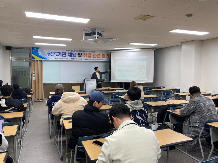 본문 시작 홈으로 교육과정 학과소개 취업정보 교육과정 학과소식 홈페이지가이드 비교과프로그램 교육과정 전공교육 체계도 비교과프로그램 회계 및 세무 분야 진로 특강 전산회계 특강 전산세무 특강 회계 및 세무 공무원 특강 회계 및 세무 분야 진로 특강 회계 및 세무 분야 진로 특강 페이스북 트위터 프린트 2025학년도 2학기 회계세무금융학과 진로 특강 회계세무금융학과 104 2026-02-03 2025학년도 2학기 건강보험심사평가원 실장님을 초청하여 공공기관 채용 및 취업 관련 방법에 관해 진로 특강을 진행하였습니다. 목록 이전2025학년도 1학기 회계세무학과 3차 전공특강 다음 2025학년도 2학기 회계세무금융학과 진로 특강 만족도조사 만족도 조사 이 페이지에서 제공하는 정보에 대하여 만족하시나요? 매우만족 만족 보통 불만족 매우불만족