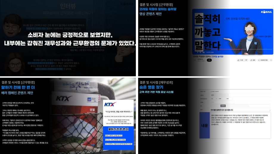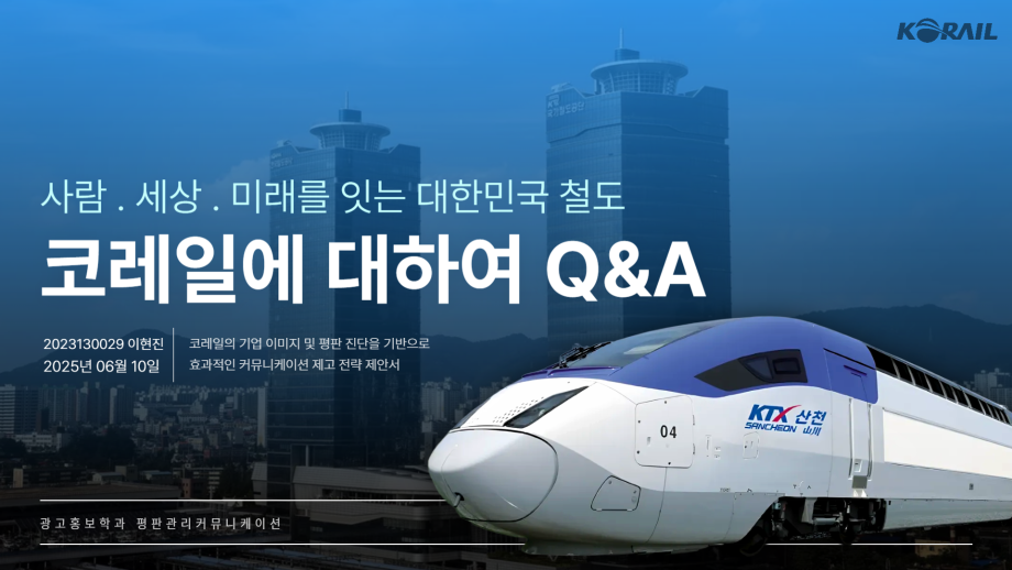 본문 시작 홈으로 흥미로운 교육과정 매력적인 학과소개 흥미로운 교육과정 특별CC프로그램 We can 취업 따뜻한 커뮤니티 홈페이지가이드 작품 갤러리 교육일정 교육과정 전공교육 체계도 졸업후진로 작품 갤러리 작품 갤러리 페이스북 트위터 프린트 [평판관리]코레일 평판관리커뮤니케이션 기획서 광고홍보학과 1801 2025-06-25 2025년도 1학기 평판관리커뮤니케이션 이현진_코레일 평판관리 목록 이전[2024KOSAC]대한민국대학생광고대회 출품작 다음 [2025KOSAC]대한민국대학생광고대회