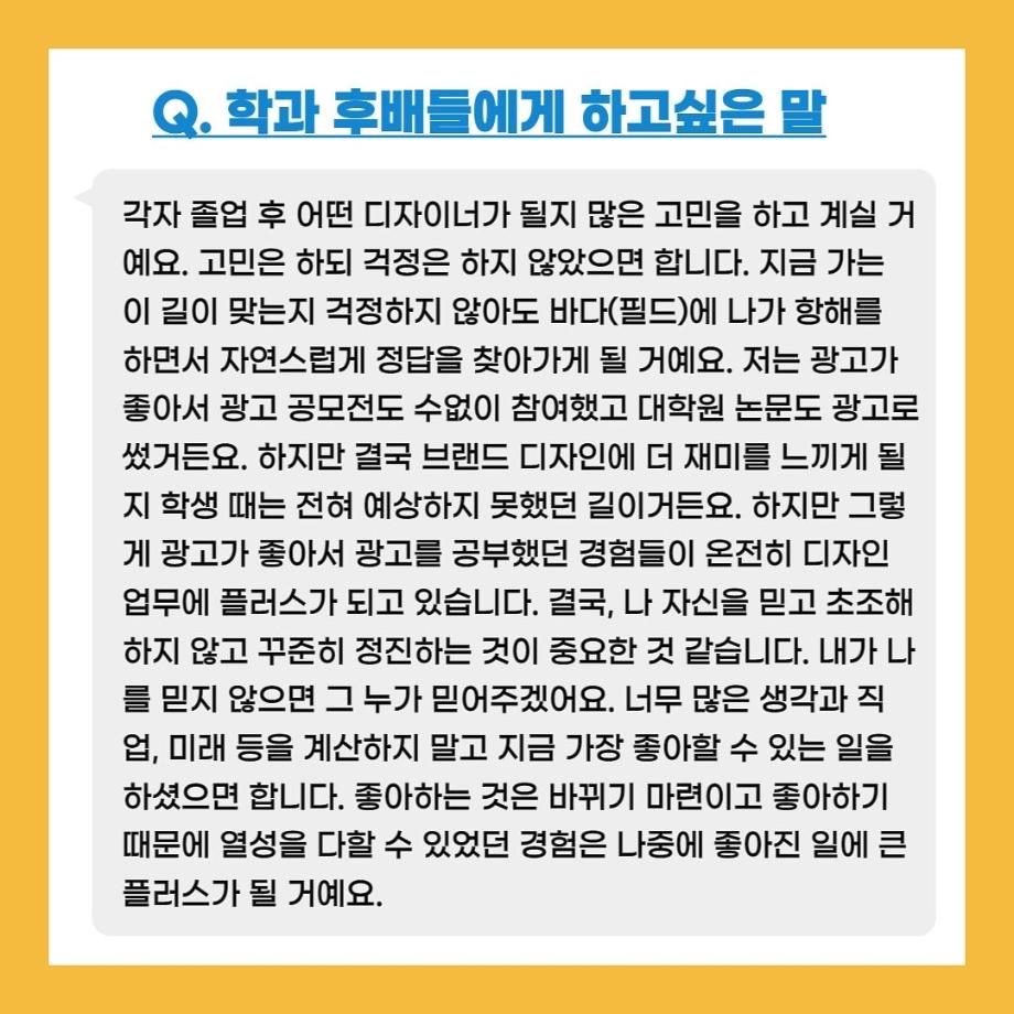 본문 시작 홈으로 입학/취업 학과소개 학과과정 시영소식 입학/취업 AI 학과자랑 SNS소통 홈페이지가이드 취업지금 입학여기 취업지금 전공소개 취업지금 페이스북 트위터 프린트 자랑스럽고 빛나는 선배들 1탄! 시각영상디자인학과 2486 2022-02-07 목록 이전세명동문열전 - 유소연 가화디자인 대표 다음 자랑스럽고 빛나는 선배들 2탄! 담당부서 : 시각영상디자인학과 담당자 : - 연락처 : 043-649-1726 최종수정일 : 2024-10-26 만족도조사 만족도 조사 이 페이지에서 제공하는 정보에 대하여 만족하시나요? 매우만족 만족 보통 불만족 매우불만족