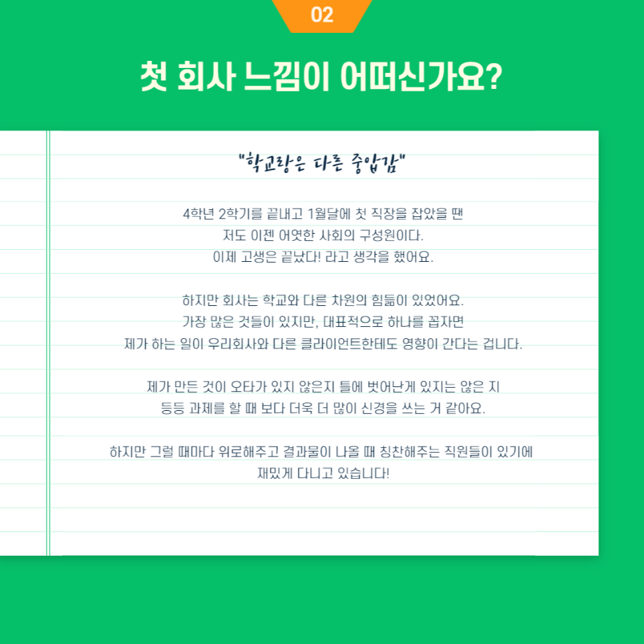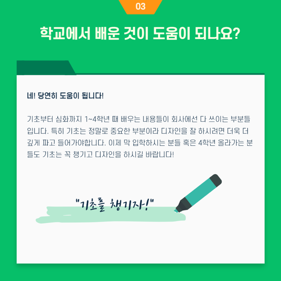 본문 시작 홈으로 입학/취업 학과소개 학과과정 시영소식 입학/취업 AI 학과자랑 SNS소통 홈페이지가이드 취업지금 입학여기 취업지금 전공소개 취업지금 페이스북 트위터 프린트 시각영상디자인학과 윤지훈 졸업생 - 가산디지털단지 디자인회사 취업! 시각영상디자인학과 2581 2023-03-29 목록 이전시각영상디자인학과 19학번 송나은 졸업생 - 서울 강남구 대치동 광고회사 취업! 다음 취업사례 중 대학원 진학 편 담당부서 : 시각영상디자인학과 담당자 : - 연락처 : 043-649-1726 최종수정일 : 2024-10-26 만족도조사 만족도 조사 이 페이지에서 제공하는 정보에 대하여 만족하시나요? 매우만족 만족 보통 불만족 매우불만족