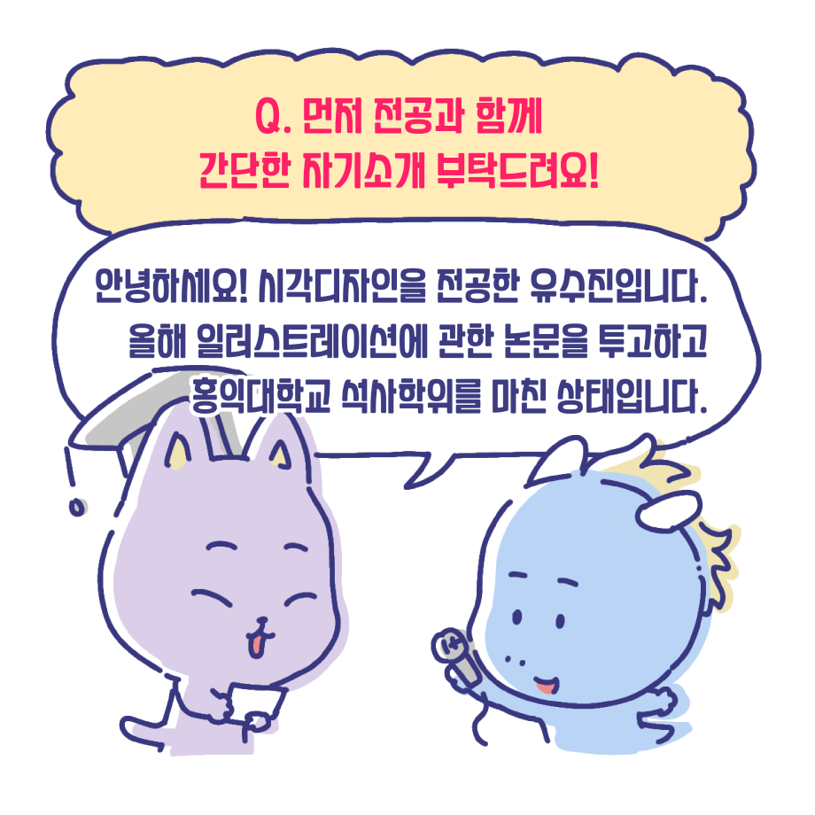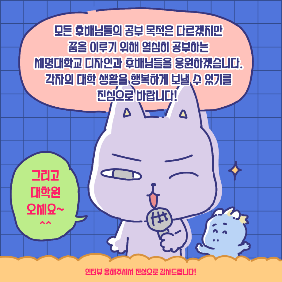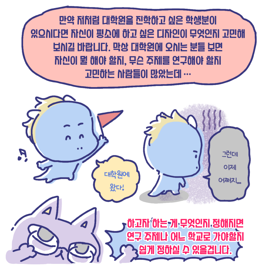본문 시작 홈으로 입학/취업 학과소개 학과과정 시영소식 입학/취업 AI 학과자랑 SNS소통 홈페이지가이드 취업지금 입학여기 취업지금 전공소개 취업지금 페이스북 트위터 프린트 취업사례 중 대학원 진학 편 시각영상디자인학과 2398 2023-07-17 졸업생 중, 대학원 진학자 편입니다. 유수진 선배이며, 금년 2월에 홍익대학교 대학원을 졸업하였습니다. 인터뷰 및 웹툰 제작은 3학년 전희진 학생이 진행하였습니다. 목록 이전시각영상디자인학과 윤지훈 졸업생 - 가산디지털단지 디자인회사 취업! 다음 게임 레벨 디자이너 - 15학번 전상필 졸업생 담당부서 : 시각영상디자인학과 담당자 : - 연락처 : 043-649-1726 최종수정일 : 2024-10-26 만족도조사 만족도 조사 이 페이지에서 제공하는 정보에 대하여 만족하시나요? 매우만족 만족 보통 불만족 매우불만족