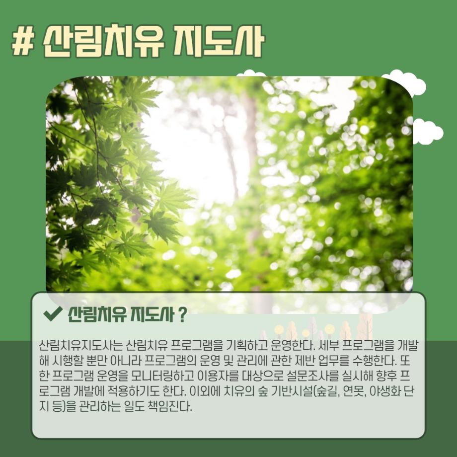 본문 시작 홈으로 머글 한줌단 학과안내 교수소개 교육과정 커뮤니티 머글 한줌단 홈페이지가이드 진로? 무물!! 어쩔 TV 저쩔 TV 진로? 무물!! TM Youtube TM Instagram TM Blog TM Facebook 진로? 무물!! 페이스북 트위터 프린트 산림치유 지도사 (Forest Healing Instructor) 관광경영학과 3264 2022-02-19 목록 이전국제 의료관광 코디네이터(International Medical Tour Cordinator) 다음 바리스타(Barista) 만족도조사 만족도 조사 이 페이지에서 제공하는 정보에 대하여 만족하시나요? 매우만족 만족 보통 불만족 매우불만족