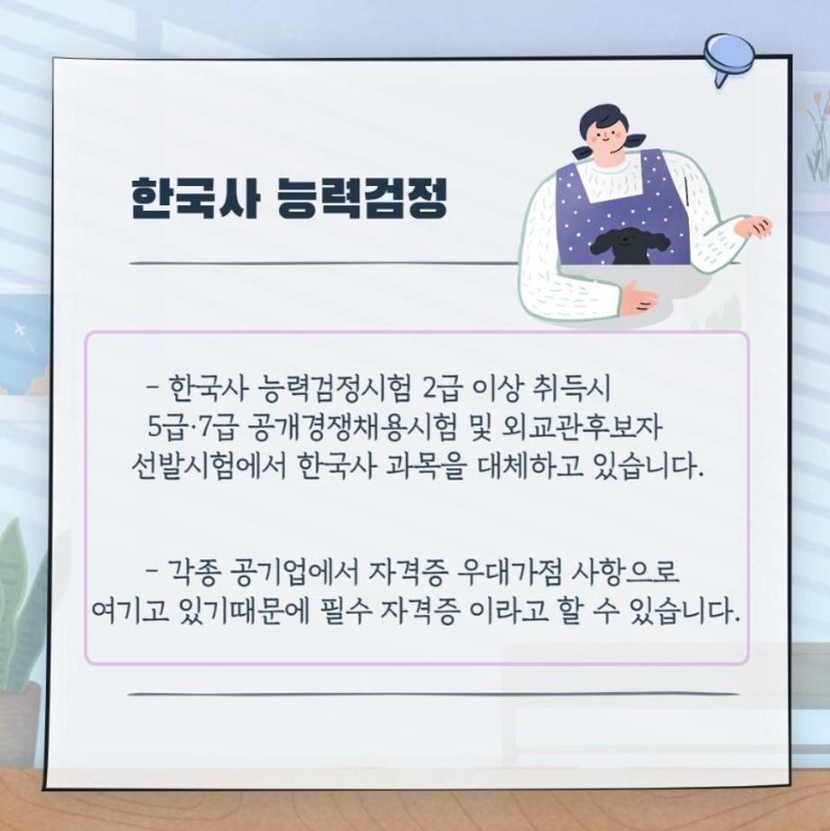 각종 공기업에서는 자격증 가점 사항으로 여기고 있기도 하고, 이제는 취업을 하거나 시험을 치를때도 한능검 자격증을 제출하는 것으로 대체하고 있기 때문에 필수 자격증이라고 볼 수 있습니다.