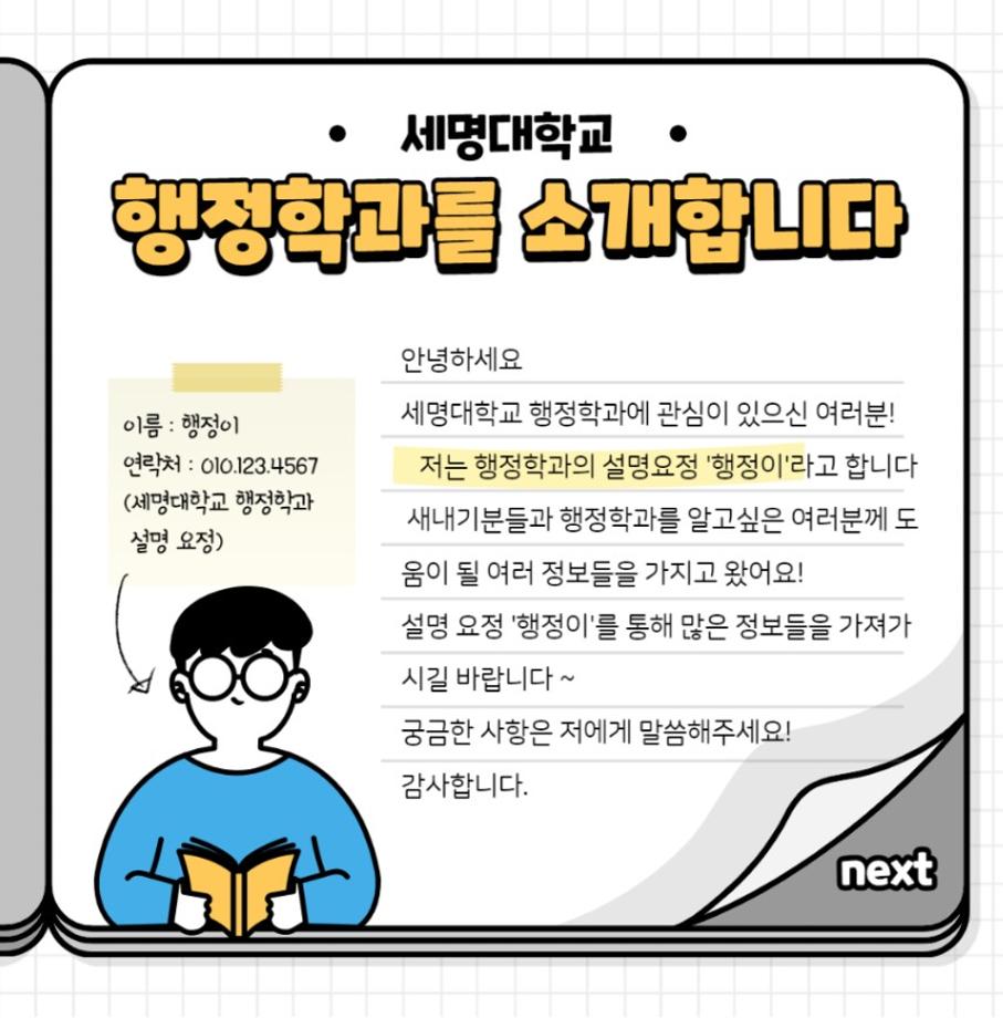 1️⃣. 세명대학교 행정학과의 모든것을 설명요정 행정이와 함께 같이 알아봅시다