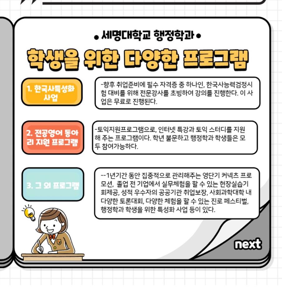 3️⃣. 행정학과 학생들의 무궁무진한 발전과 다양한 경험을 위해 우리 세명대학교 행정학과는 끊임없는 프로그램을 진행중입니다!!